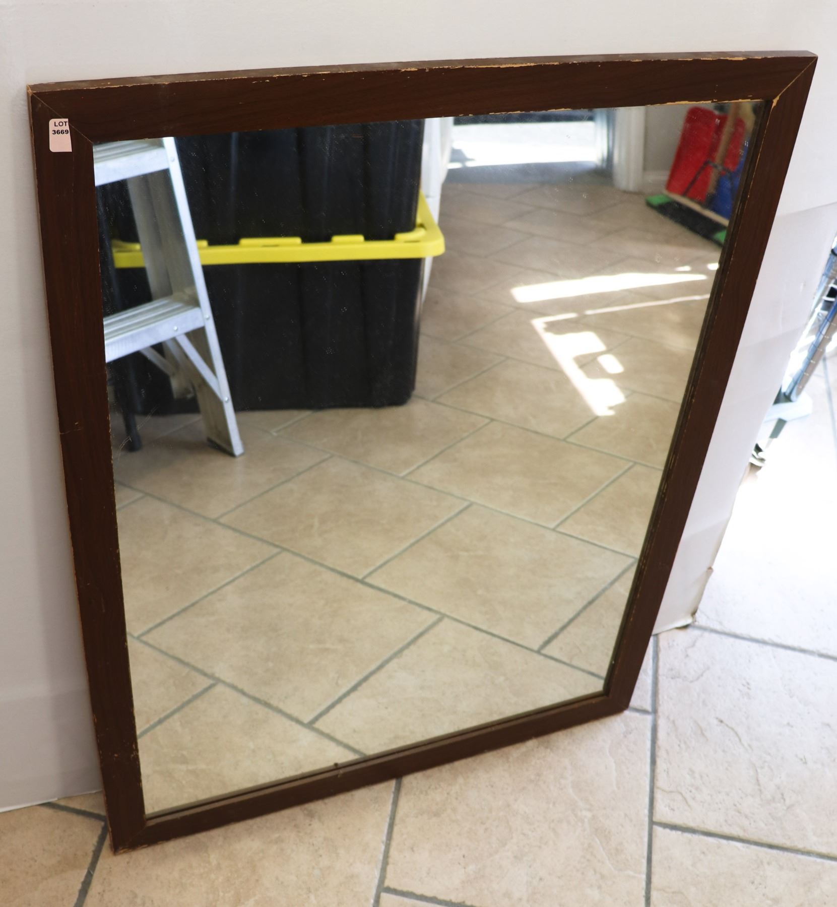 WOOD FRAMED MIRROR. APPROX 28" X 36"