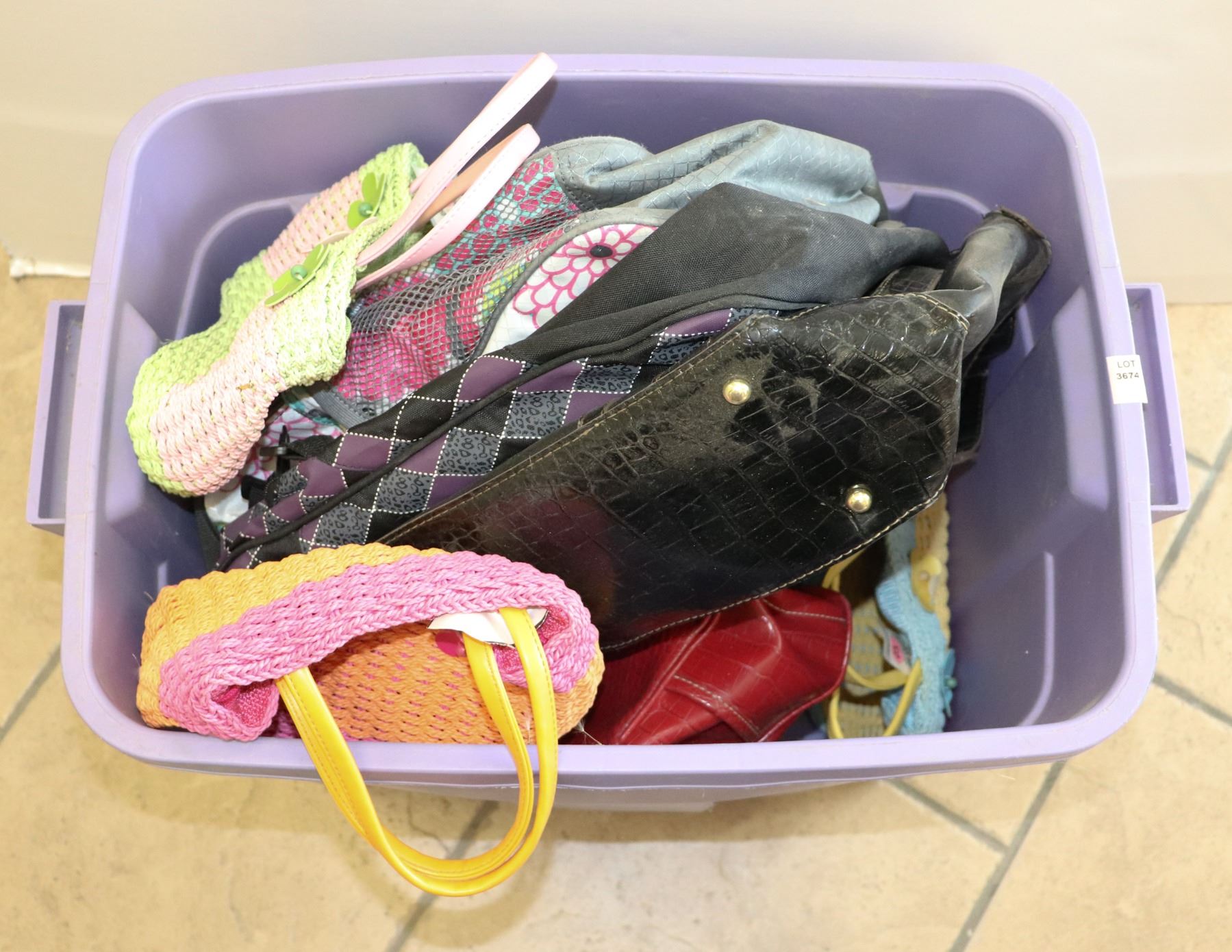 TOTE FULL OF PURSES, BACKPACKS AND MORE