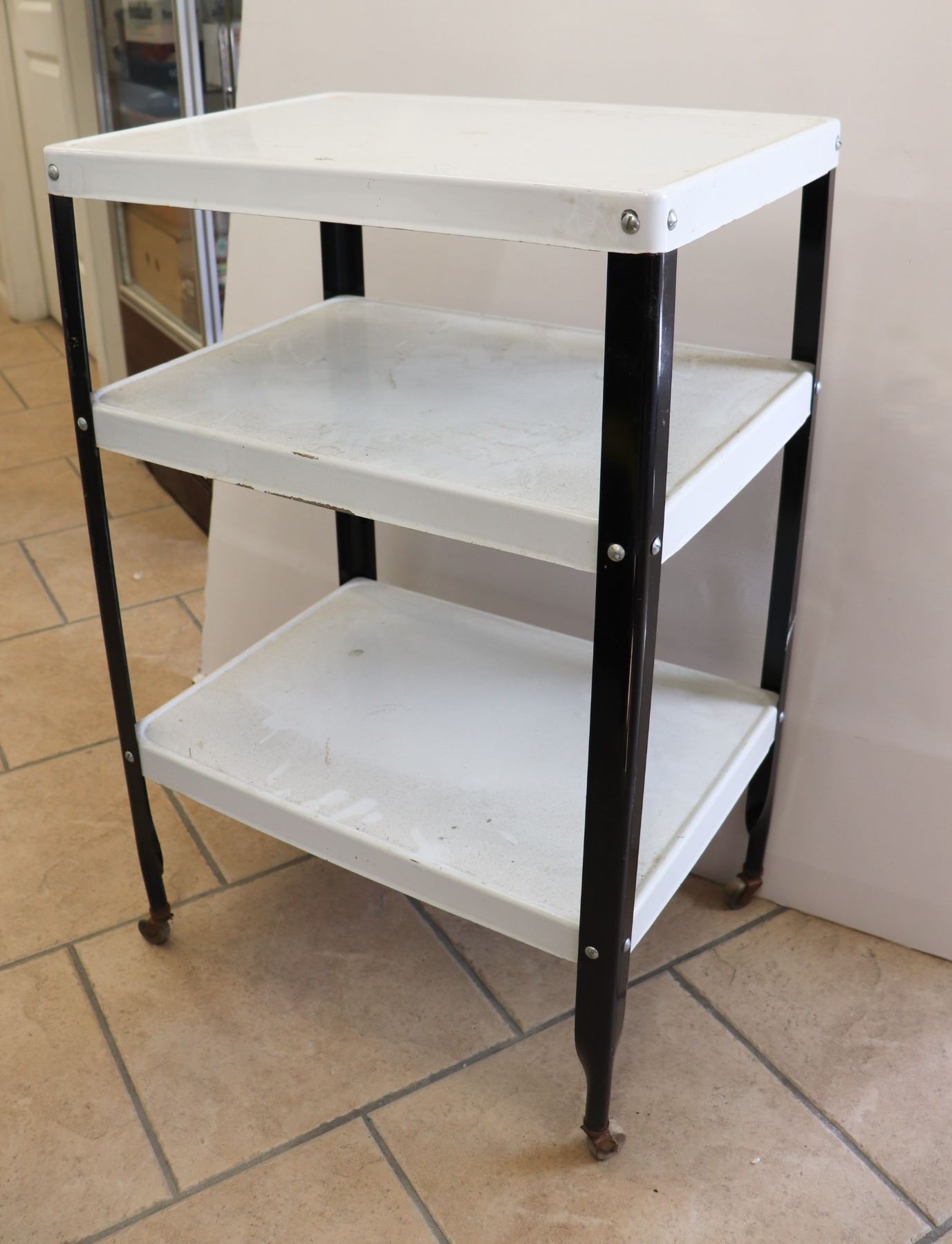 THREE TIER METAL ROLLING STORAGE. WHEELS NEED LUBRICATION. APPROX 31.5" TALL