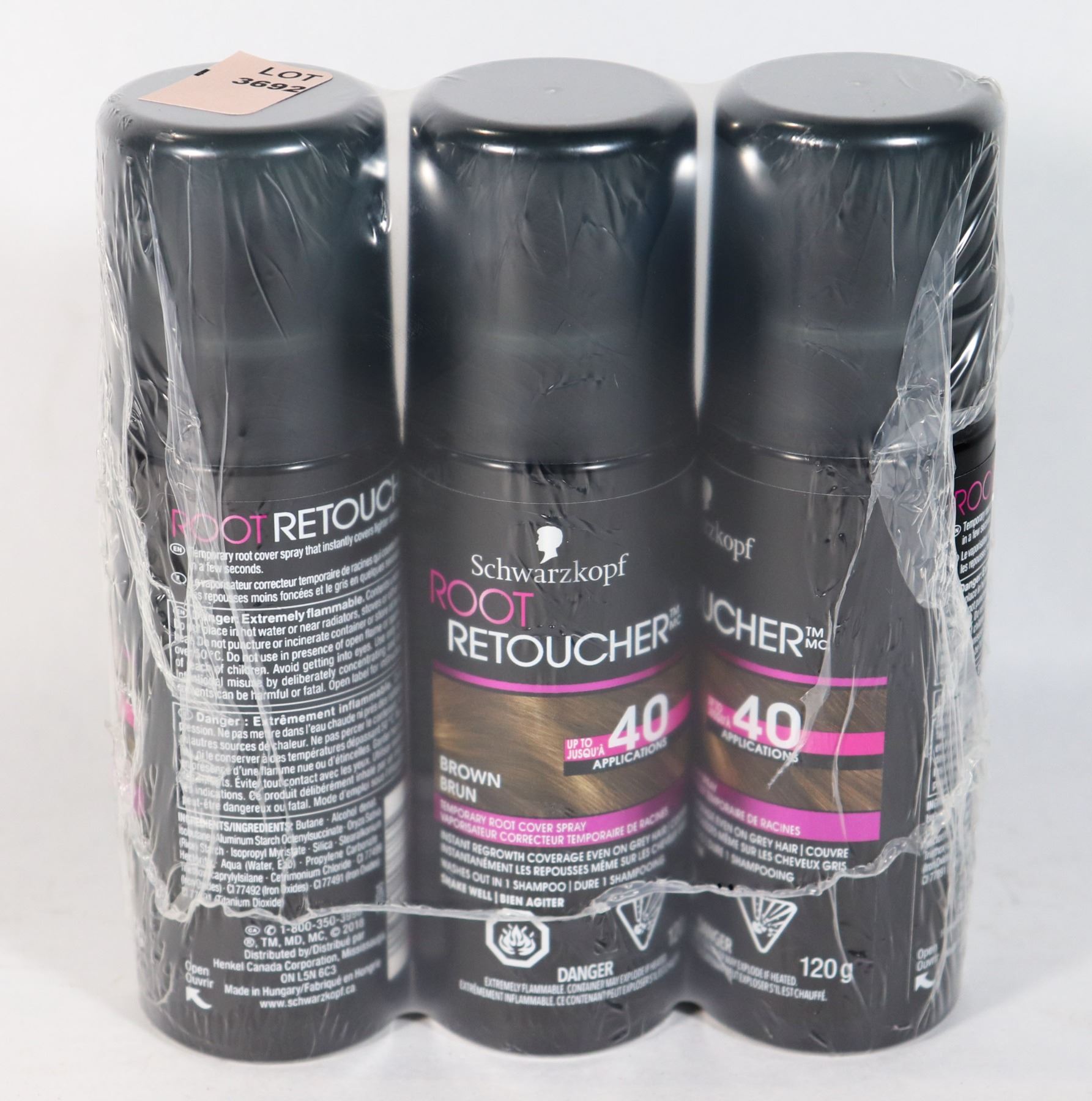 THREE 120ML SPRAY BOTTLES OF SCHWARZKOPF ROOT RETOUCHER. BROWN