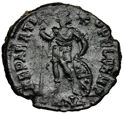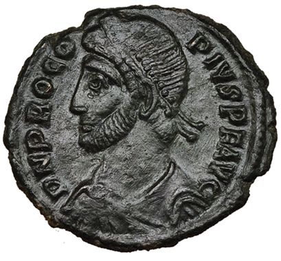 PROCOPIO. AE-3. Nicomedia, A (364-367). R/ El Emperador a der.; REPARATIO FEL. TEMP. RIC-10. CH-8. Campos repasados. Pátina verde. MBC/MBC-. Muy rara.
