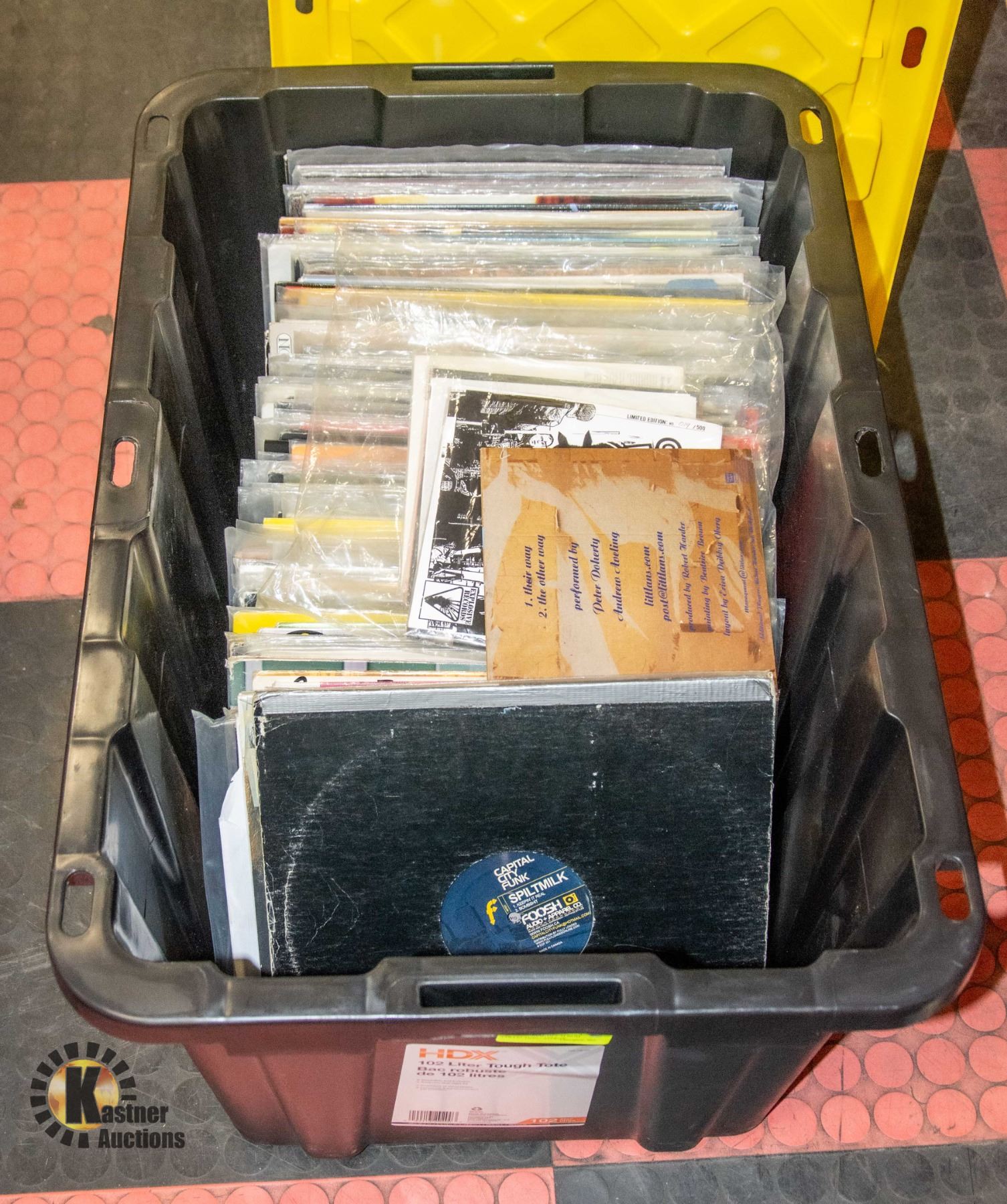 120 VINYL ALBUMS AND ASSORTMENT OF 45'S - MOSTLY ROCK, RAP, VINTAGE DEATH ROW RECORDS, RARE NOT FOR PUBLIC SALE ALBUMS, DR. DRE, SNOOP, WUTANG CLAN, BEASTIE BOYS, ETC. - ALL IN 102 LITER HEAVY DUTY STORAGE TOTE WITH LID **ALL ITEMS MUST BE REMOVED BY 5PM SATURDAY, MARCH 2ND 2024. ALL REMAINING ITEMS WILL BE SUBJECT TO A $6.00 PER DAY STORAGE CHARGE. ANY ITEMS REMAINING AFTER MONDAY, MARCH 18TH, 2023 WILL BE CONSIDERED FORFEITED. NO REFUNDS WILL BE ISSUED FOR FORFEITED ITEMS. TO SCHEDULE A PICK UP APPOINTMENT CLICK HERE