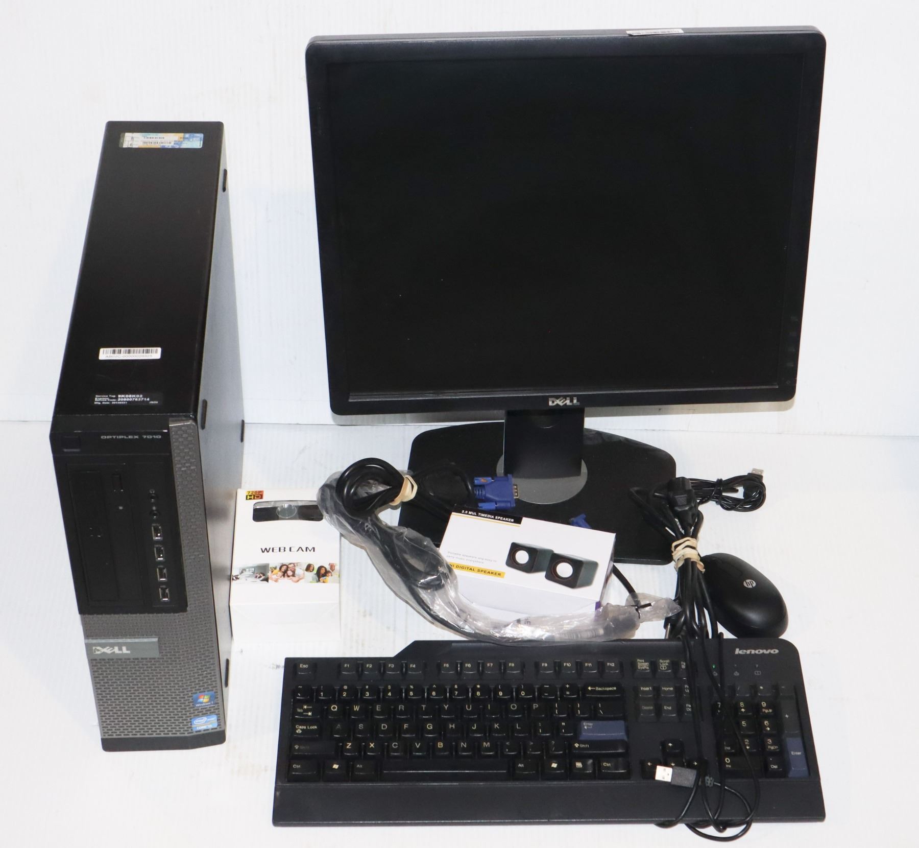 DELL OPTIPLEX 7010 I5 WINDOWS 10 WITH 500GB HARD DRIVE AND 4 GB RAM. NO WIRELESS CARD, YOU WILL NEED A WIFI DONGLE ($10-15 ON AMAZON) TO USE WIRELESS INTERNET OR USE WIRED INTERNET AS CURRENTLY SET UP. INCLUDES 19" DELL MONITOR,KEYBOARD, MOUSE, POWER CABLES, MONITOR VGA CABLE, NEW WEBCAM, NEW SPEAKERS