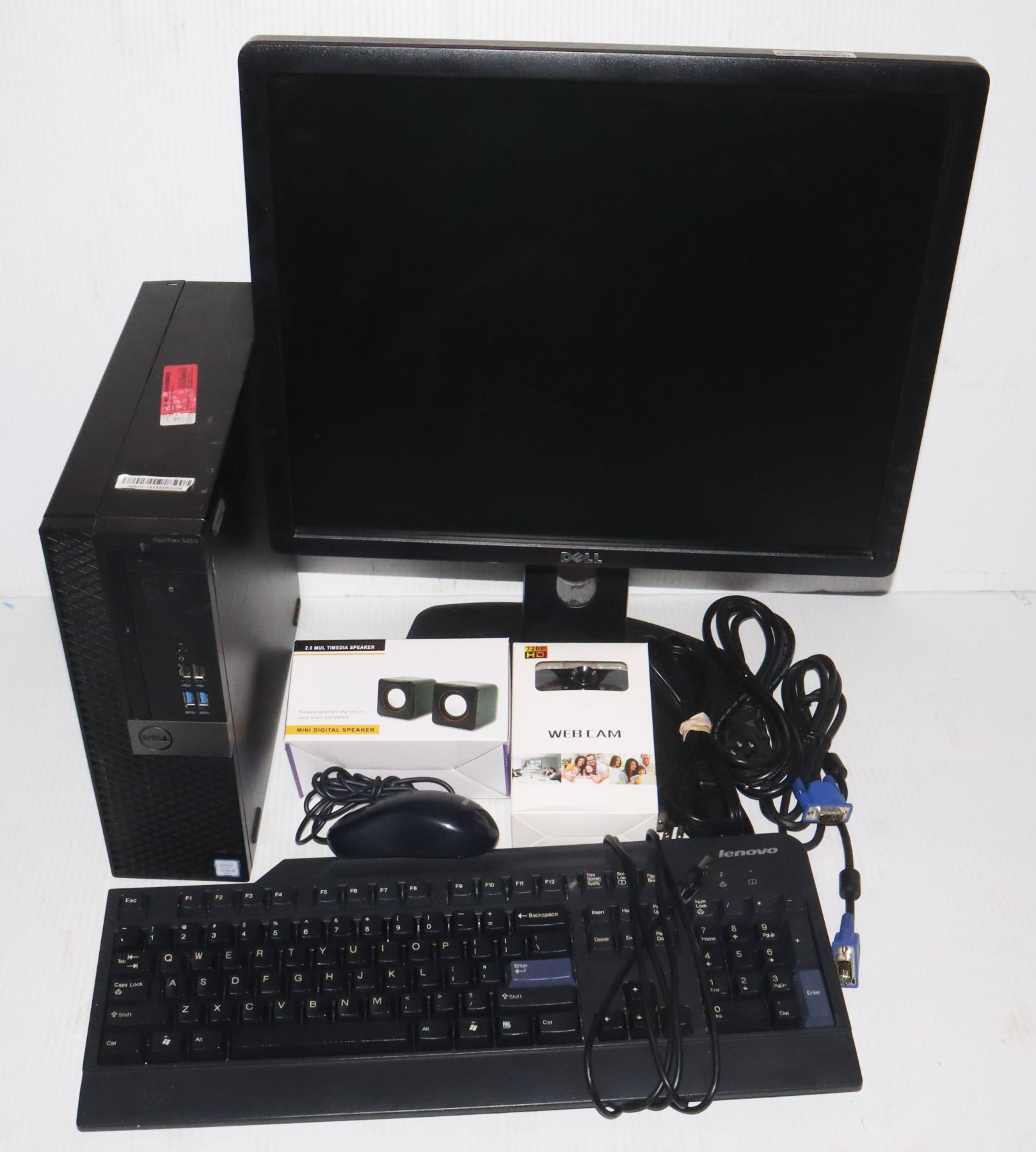 DELL OPTIPLEX I5 WINDOWS 10 WITH 500GB HARD DRIVE AND 8 GB RAM. NO WIRELESS CARD, YOU WILL NEED A WIFI DONGLE ($10-15 ON AMAZON) TO USE WIRELESS INTERNET OR USE WIRED INTERNET AS CURRENTLY SET UP. INCLUDES 19" DELL MONITOR, KEYBOARD, MOUSE, POWER CABLES, MONITOR VGA CABLE, NEW WEBCAM, NEW SPEAKERS. THIS UNIT HAS NOT BEEN POWERED ON SINCE BEING REFURBISHED, YOU WILL NEED TO RUN BASIC SETUP ON IT JUST LIKE WHEN YOU PURCHASE A NEW COMPUTER