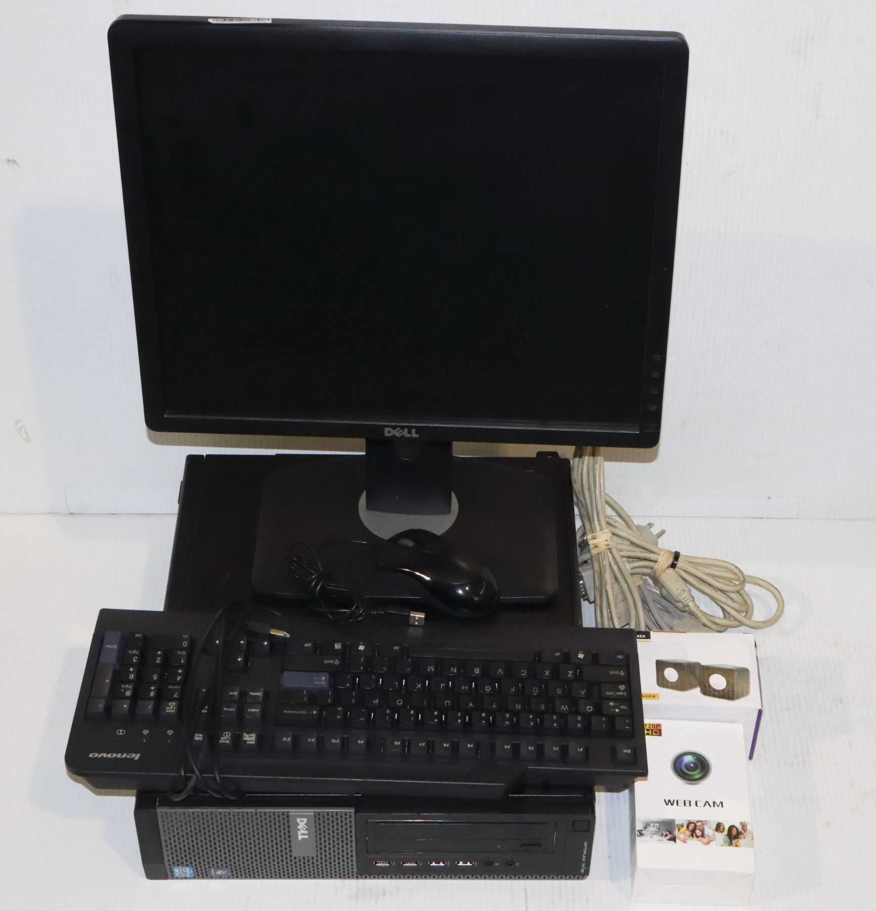 DELL OPTIPLEX 7010 I5 WINDOWS 10 WITH 500GB HARD DRIVE AND 4 GB RAM. NO WIRELESS CARD, YOU WILL NEED A WIFI DONGLE ($10-15 ON AMAZON) TO USE WIRELESS INTERNET OR USE WIRED INTERNET AS CURRENTLY SET UP. INCLUDES 19" DELL MONITOR, KEYBOARD, MOUSE, POWER CABLES, MONITOR VGA CABLE, NEW WEBCAM, NEW SPEAKERS