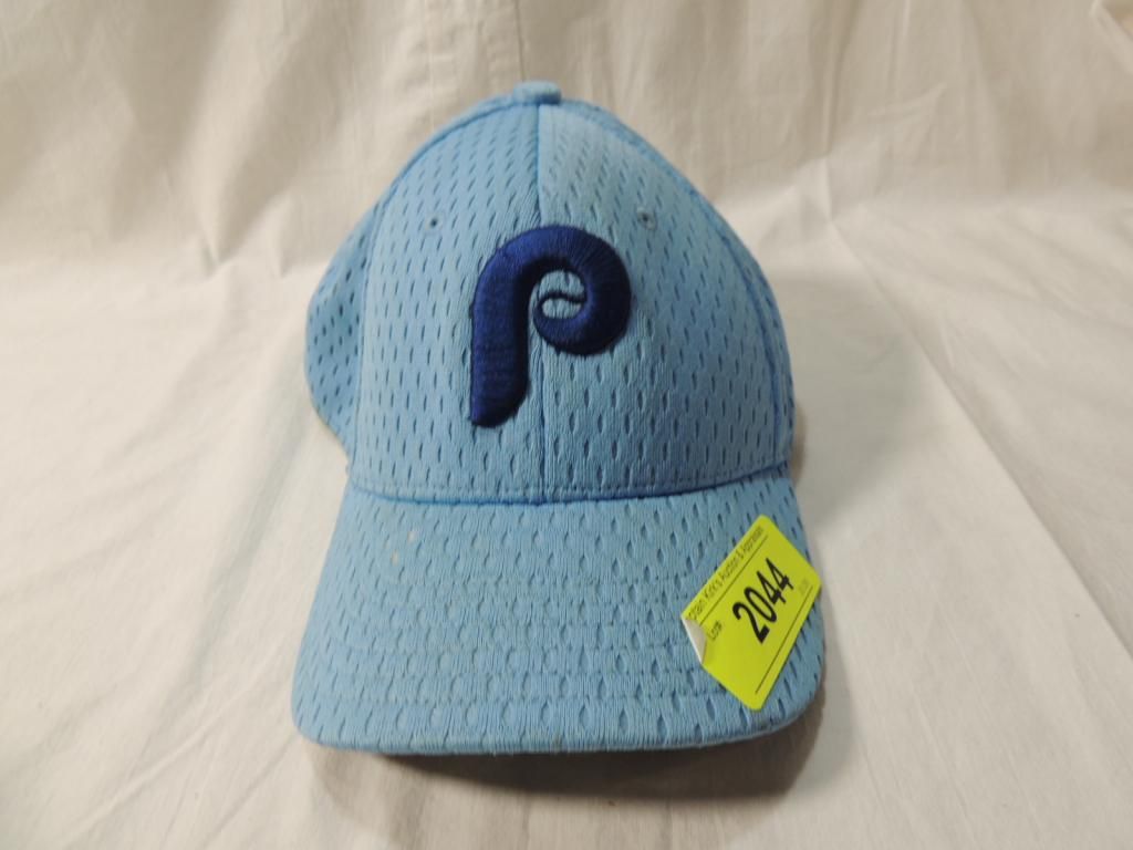 LIGHT BLUE JERSEY MESH PHILADELPHIA PHILLIES RETRO P LOGO. AS SHOWN SEE PHOTO FOR MORE DETAILS.