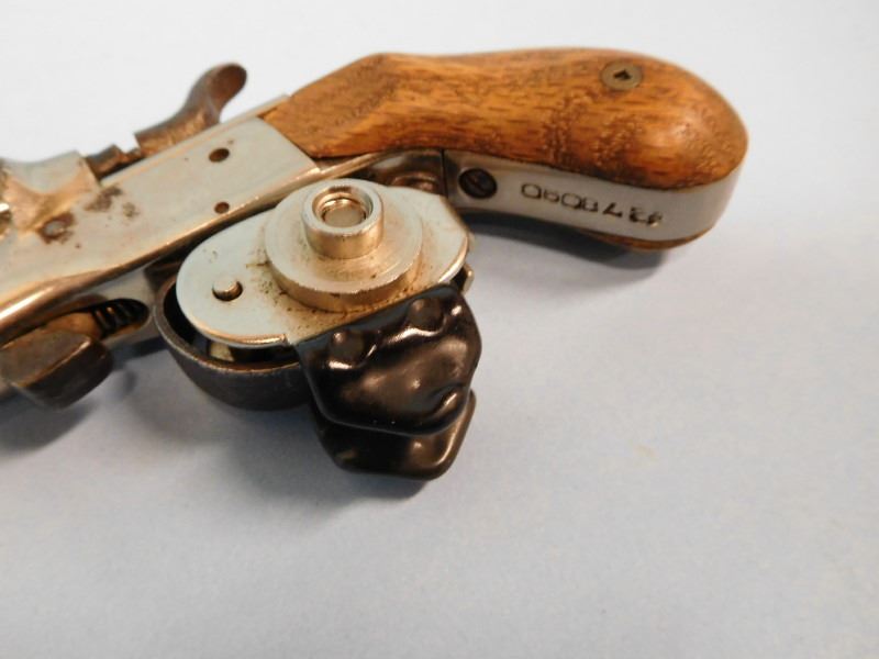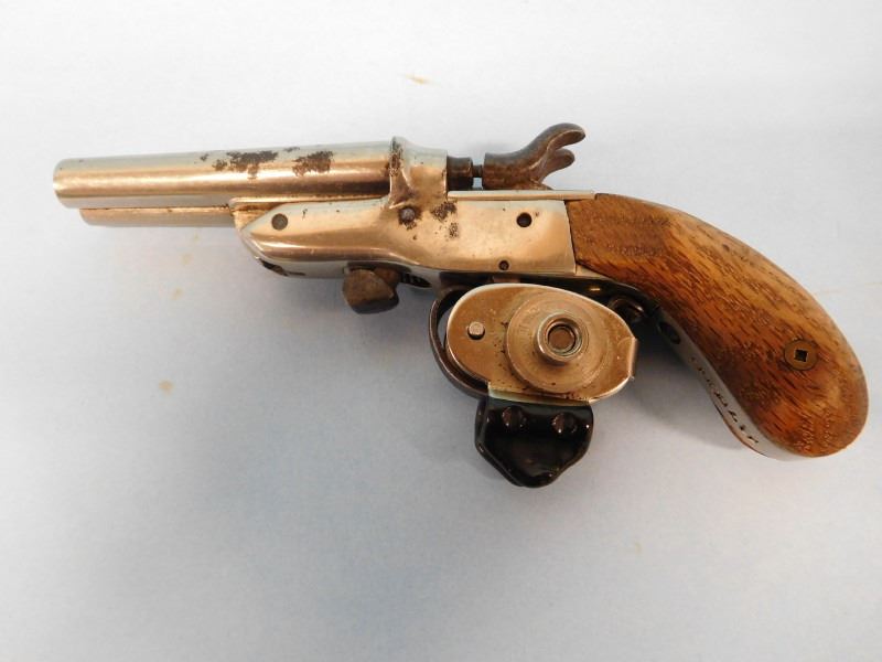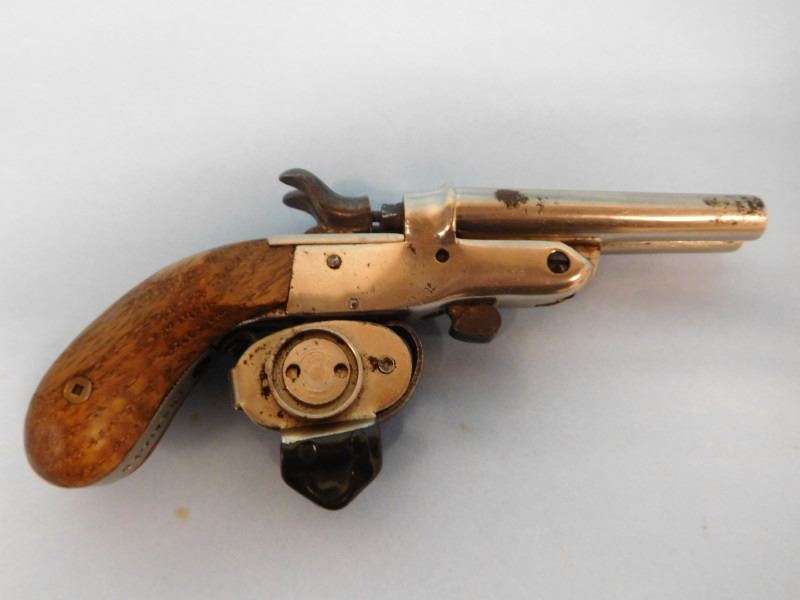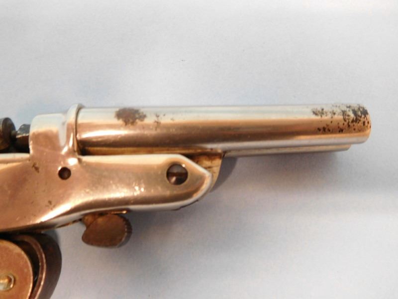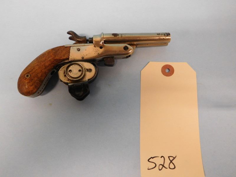 PROHIB: Rossi; cal .22; Derringer; side by side barrels; some wear on chrome finish; exposed hammers; Tip up; 70mm Barrel; Ser #E278090