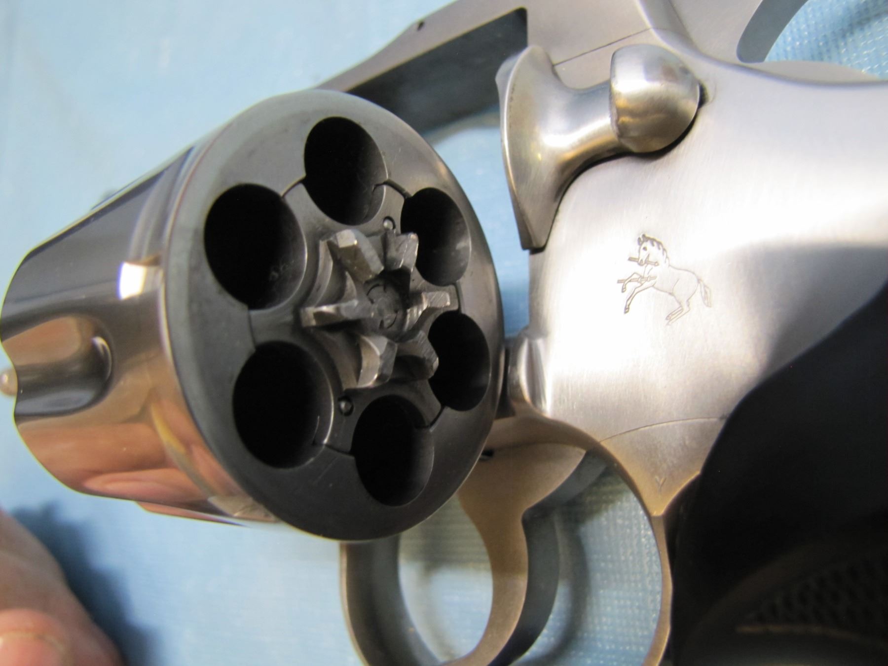 PROHIBITED : Colt ; Python; Caliber 357 magnum; Barrel length 102MM; Six shots; revolver; Double action; stainless; serial number T 21320