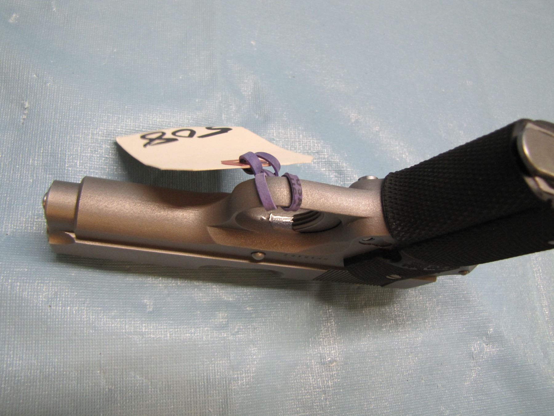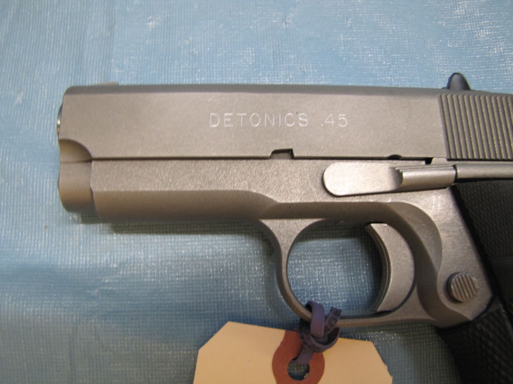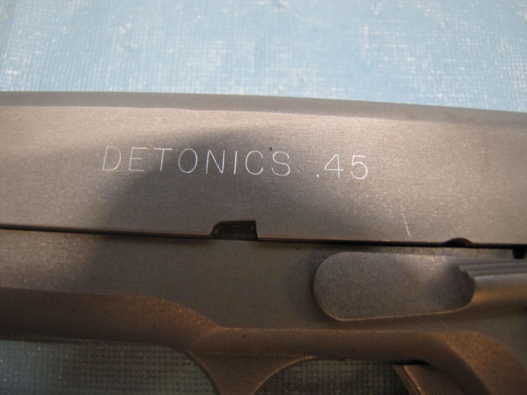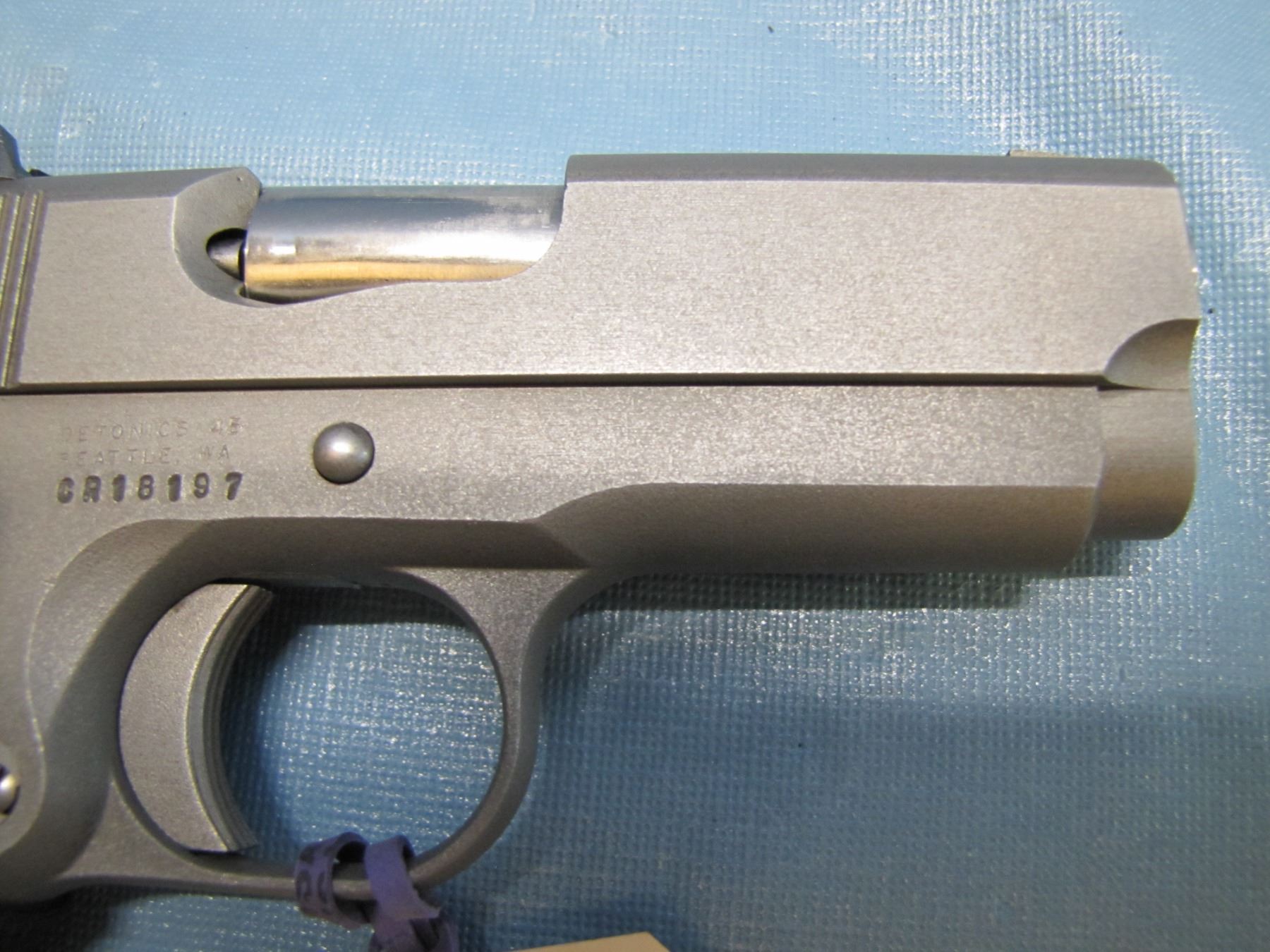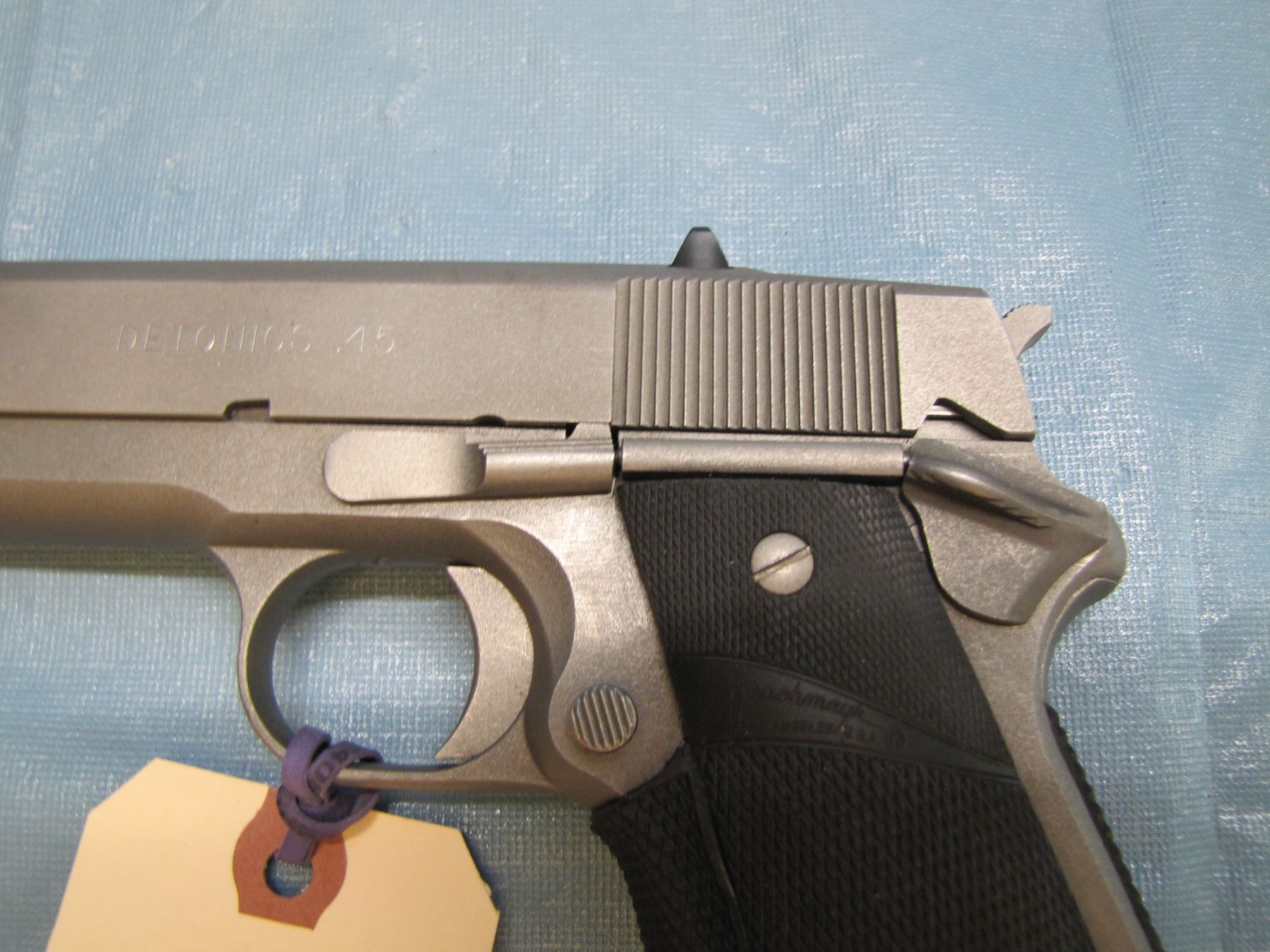PROHIBITED : Detonics; mark I combat master; caliber 45ACP; barrel length 89MM; six shots; Semi automatic; Single action; Pachmayr grips; Serial number CR18197