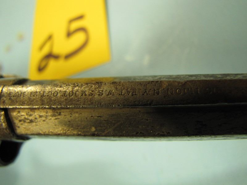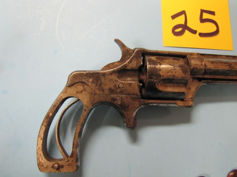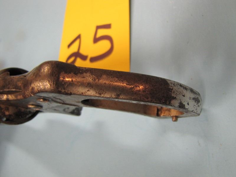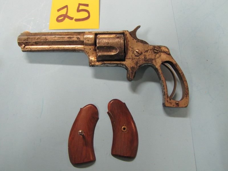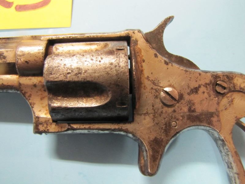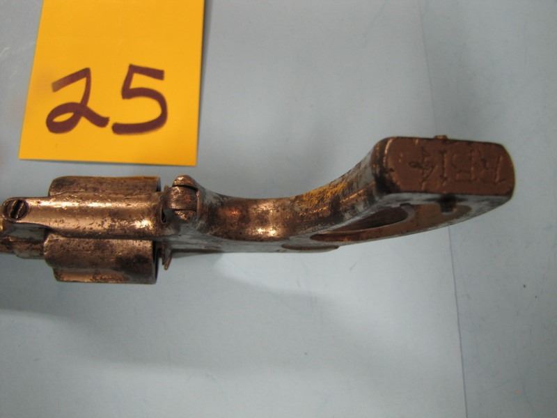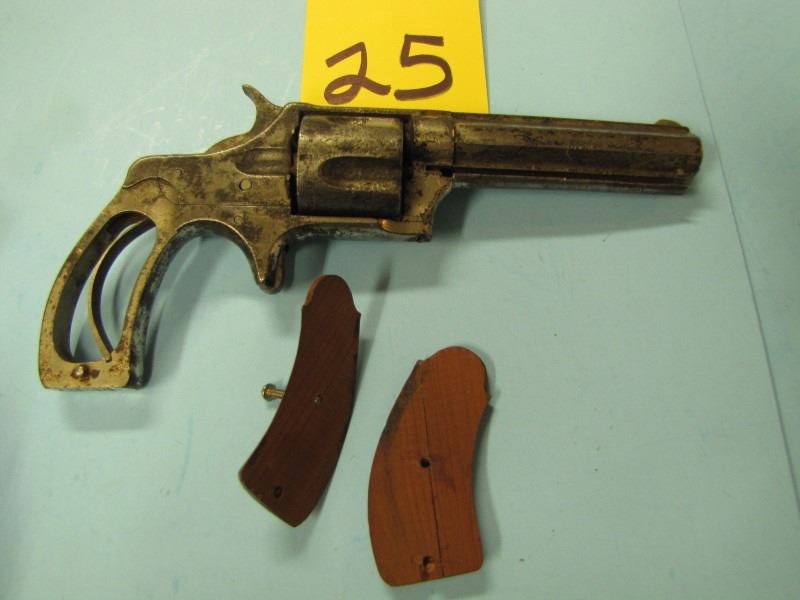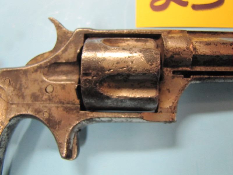 PROHIBITED: Remington, Smoot #3, parts gun, revolver, 5 shot, 38 caliber, No Visible Serial, barrel 95mm, missing ejector rod, does not lock up, finish very poor, not original grips, 1 grip cracked, PARTS GUN. THIS GUN HAS NEVER BEEN REGISTERED, WE ARE WORKING WITH THE RCMP ON THAT SO MAY TAKE LONGER THAN NORMAL TO GET THE NEW CERTIFICATION.