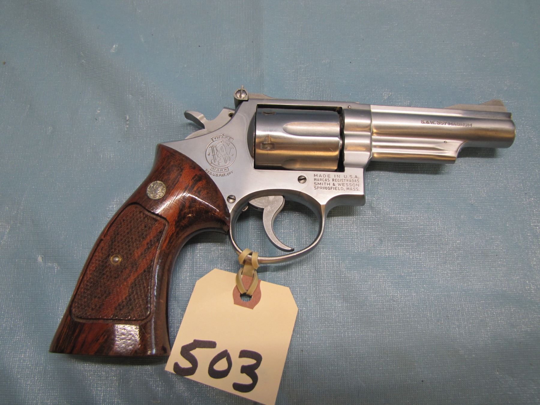 PROHIBITED : Smith and Wesson; Model 66; caliber 357 mag; barrel length 102MM; six shots; revolver; double action; Stainless; serial number 4 K 17747