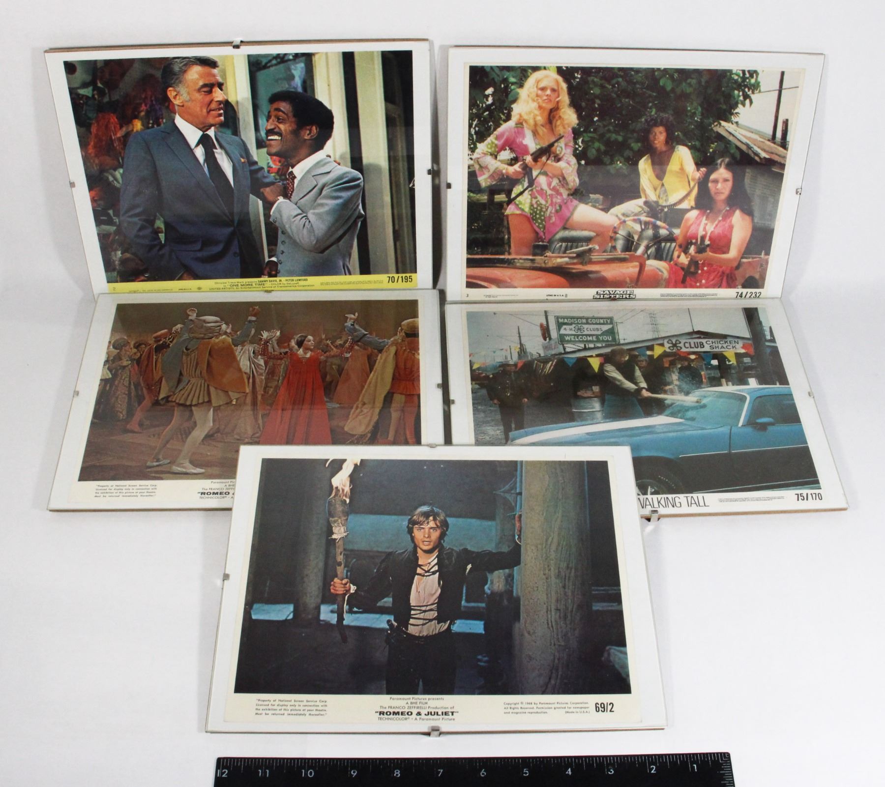 PROMOTIONAL MOVIE CARDS WITH GLASS FRAME.SET OF 2 ROMEO & JULIETT, ONE MORE TIME, PART2 WALKING TALL AND SAVAGE SISTERS PROMOTIONAL MOVIE CARDS.11X9".