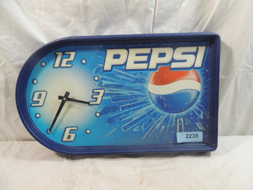 VINTAGE PROMOTIONAL PEPSI WALL CLOCK, BAR CLOCK, STORE CLOCK, PROMOTIONAL CLOCK AS SHOWN SEE PHOTO FOR MORE DETAILS.
