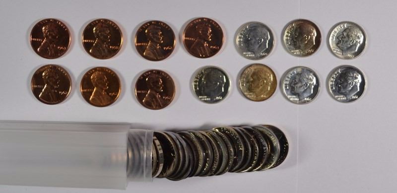 DIMES: 1957, 60, 3-61, 2-62 CENTS: 1958, 4-62, 2-63 NICKELS: 1958, 10-60, 8-61, 6-62 & 2-1963.. ESTIMATE 75.00-90.00