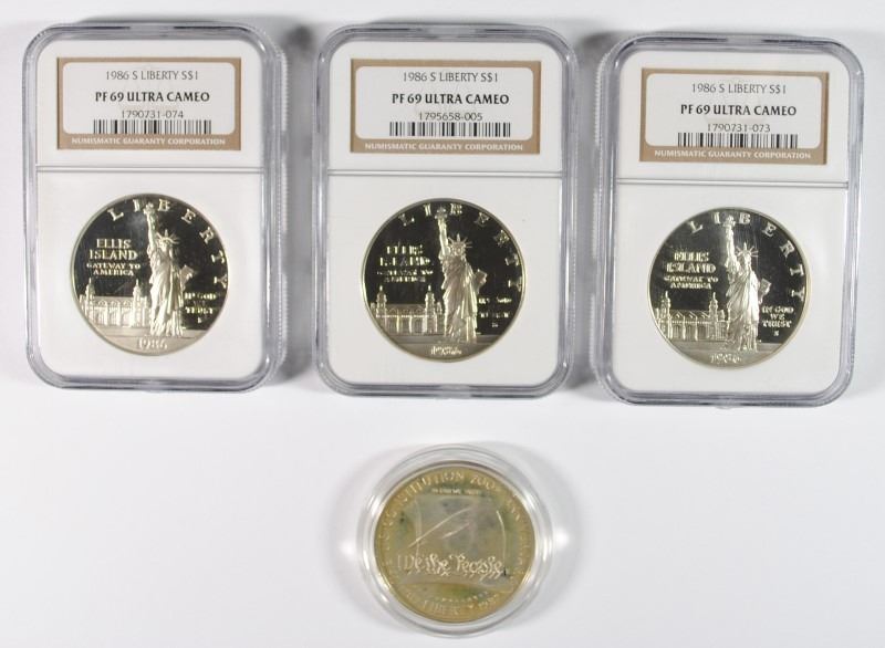 ( 3 ) 1986-S STATUE OF LIBERTY, NGC PF-69 U.C. & 1987 CONSTITUTION COIN AND CAPSULE ONLY, *PCGS#9621* ESTIMATE, $100.00 TO $120.00