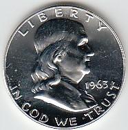PROOF FRANKLIN HALF SILVER 1963 BLAST WHITE