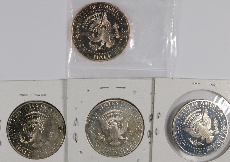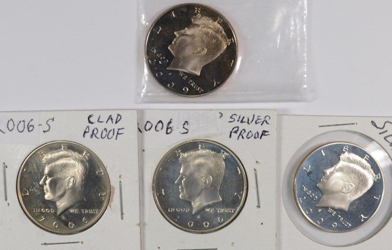 PROOF KENNEDY HALF DOLLARS 2009-S SILVER, 2006-S SILVER, 2009-S CLAD,2006-S CLAD