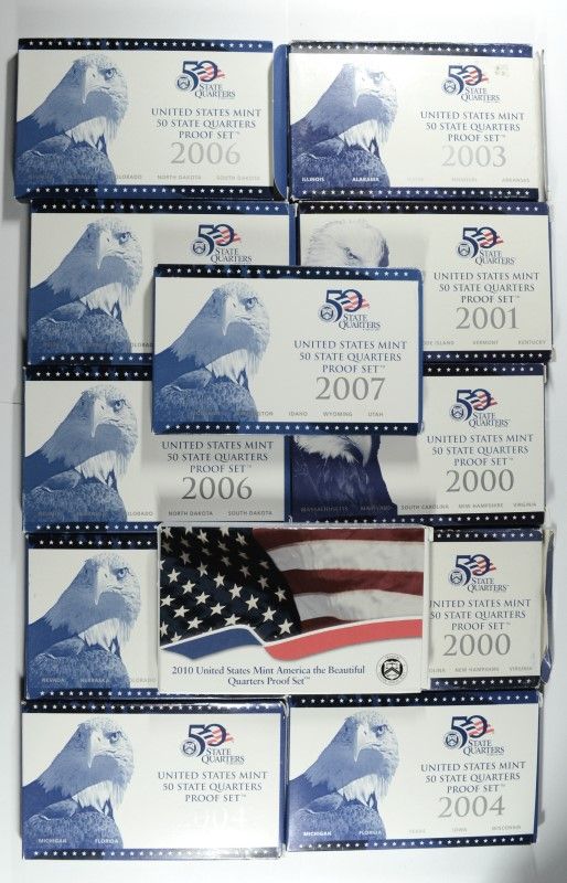 PROOF QUARTER SETS: 2-2000, 01, 03, 2-2004, 4-2006, 2007, 2010 IN ORIG. BOXES