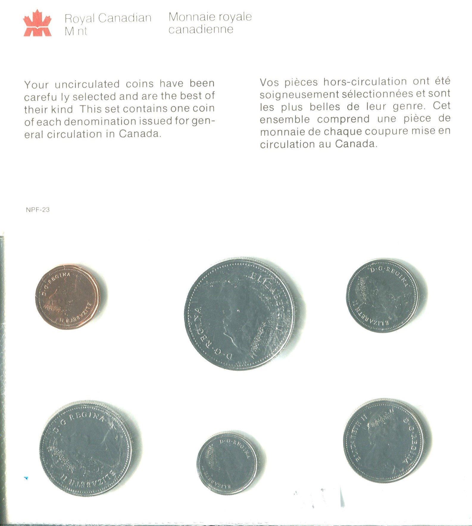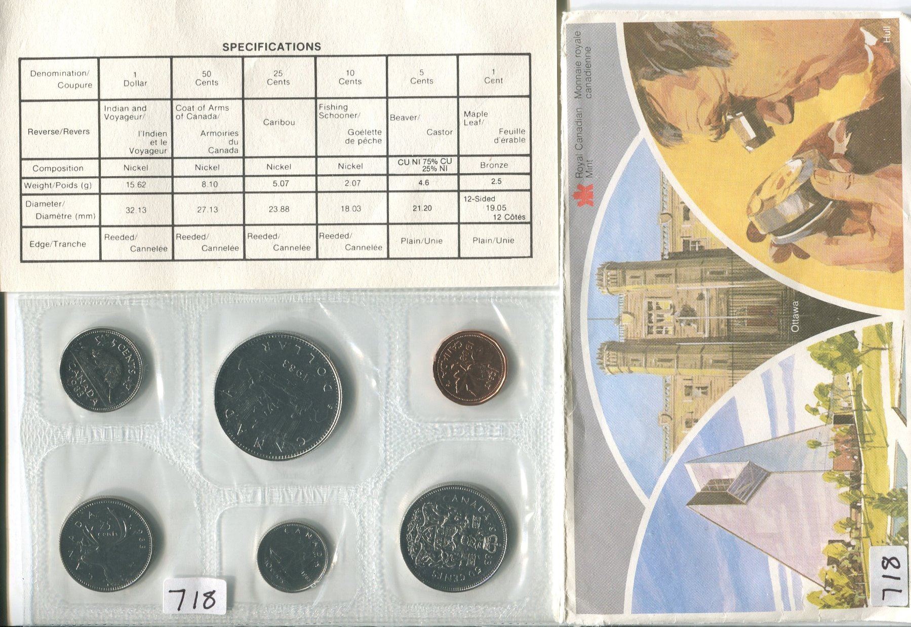 PROOF SET CANADIAN COINS (1 CENT, 5 CENT, 10 CENT, 25 CENT, 50 CENT, 1 DOLLAR COINS) *1983*