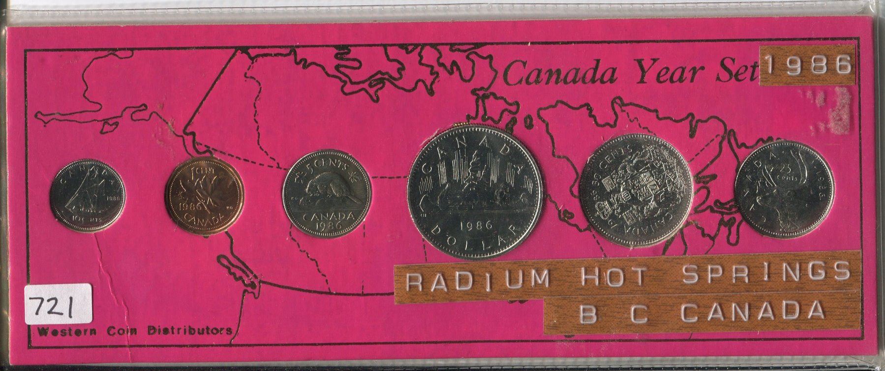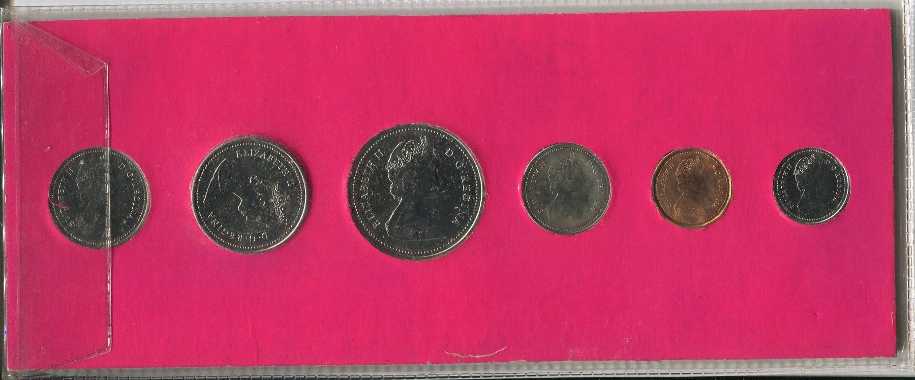 PROOF SET CANADIAN COINS (1 CENT, 5 CENT, 10 CENT, 25 CENT, 50 CENT, 1 DOLLAR COINS) *1986*