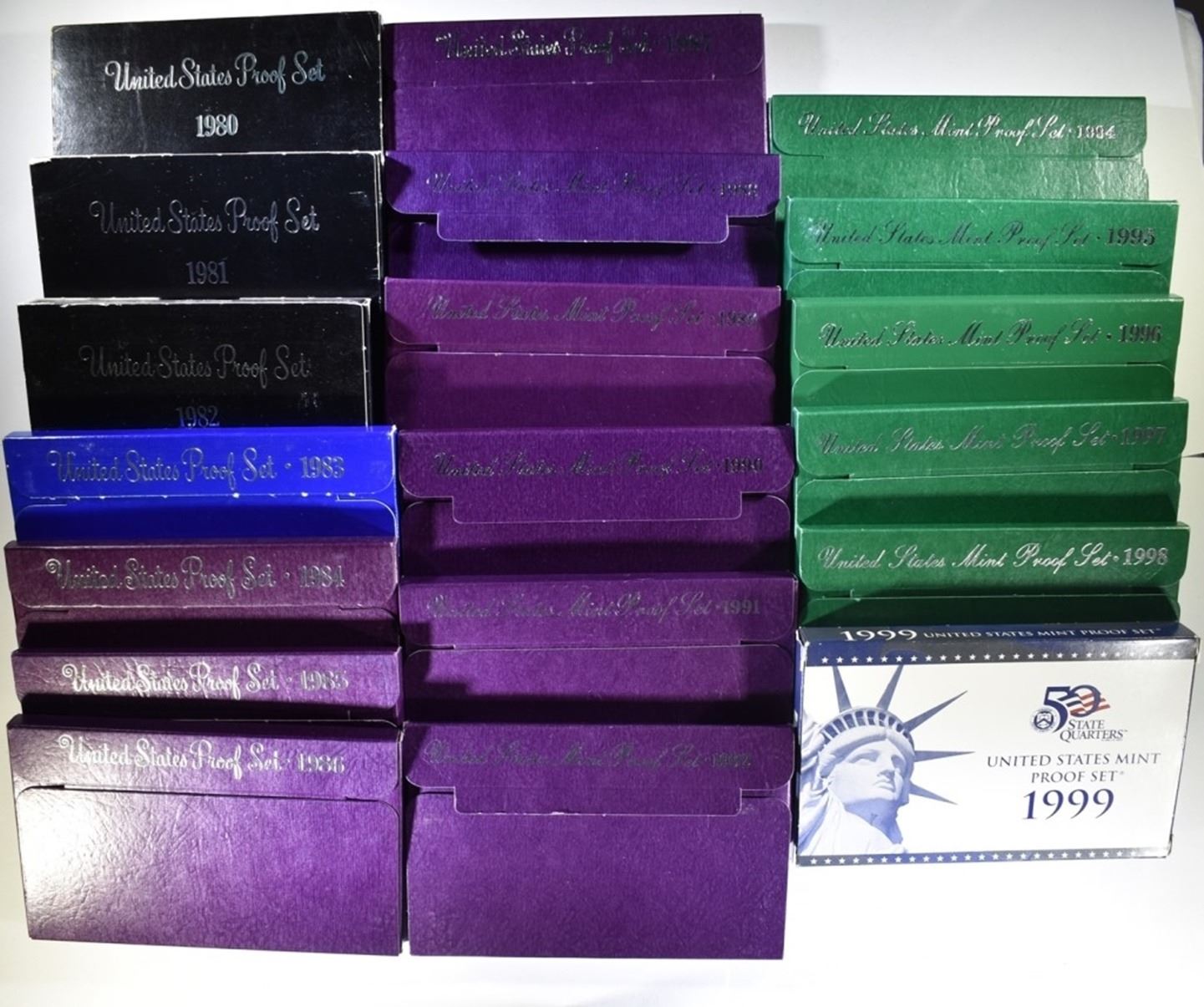 1 each year 1980 thru 1999, NO 1993 - ALL ORIGINAL BOX/COA's ESTIMATE $100 - $140.