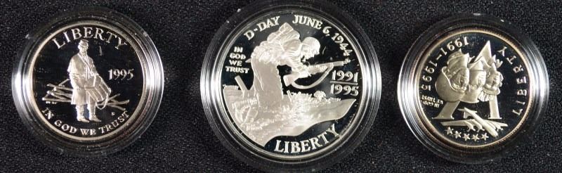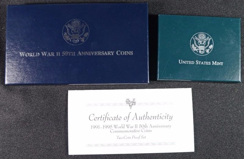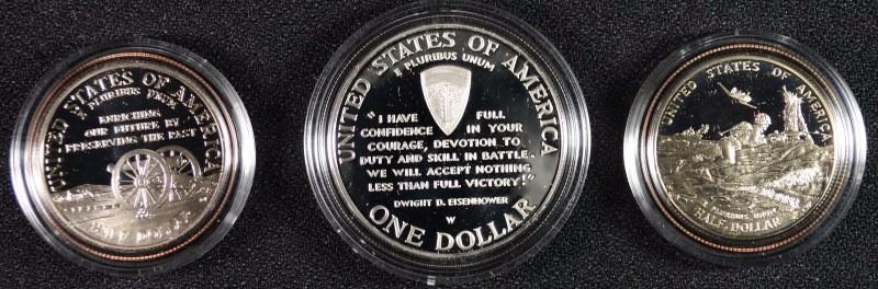 PROOF U.S. COMMEMS: 1995 CIVIL WAR HALF & WWII 2-PIECE, SILVER DOLLAR CLAD HALF