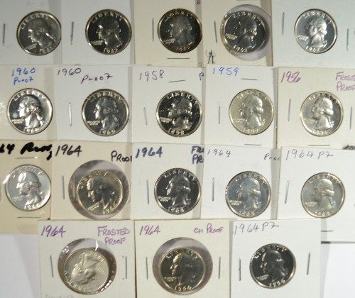 PROOF WASHINGTON QUARTERS 8- 1964, 56, 58, 59, 2-60, 61, 4-62