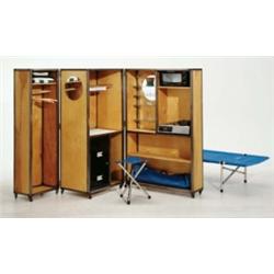 As part of her ongoing mission to "perfect the organization of a life," Andrea Zittel reconfigures common domestic spaces - a kitchen, workspace, sleeping area, and closets - into beautiful, fastidiously designed, functional objects that she refers to as "living units." "[These works] compositionally adhere to the Modernist idiom: a stripped-down language of elemental geometric shapes in which form is dictated solely by materials, and by ultimate function. [...] Zittel, however, has not only borrowed Modernism's reductive aesthetic, but also adopted its moral dimension; in the spirit of early twentieth-century Russian Constructivism, the Bauhaus academy, and the De Stijl movement, Zittel designs little 'buildings' intended to improveto simplify and thus purify - the lives of the individuals who inhabit them" (M. Grynsztejn, ABOUT PLACE: RECENT ART OF THE AMERICAS, Chicago, 1995, p. 19). Zittel's philosophic aims are reflected in the utilitarian clarity of A To Z LIVING Units, 1993, which transforms the mundane travails of daily life into Zen-like rituals.