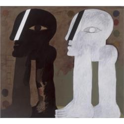 signed, titled twice and dated "Erzählung 21.12.67 Aquatic Antes" and "Zwei Figuren Schwarz/Weiß Aquatec 1970 Antes" on the reverse