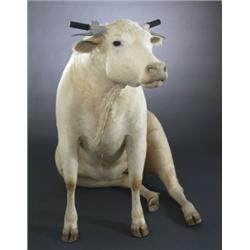 taxidermied cow and handlebars from a Vespa motorscooter