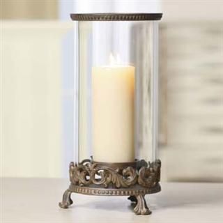 PROVENCIAL HURRICANE CANDLE HOLDER - 14"H X 7.5"W X 7"D - IRON & GLASS