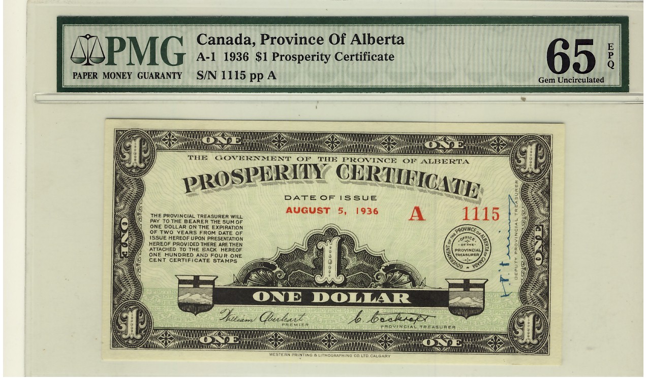 PROVINCE OF ALBERTA, 1936 $1 A1115 PMG UNC65EPQ