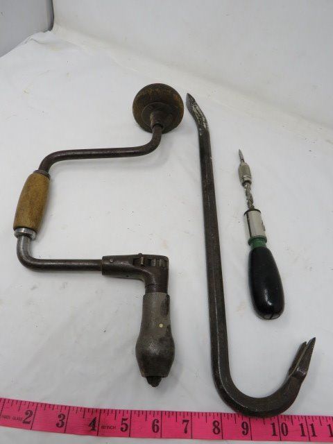 PRY BAR AND CARPENTER BRACE RETRACTABLE SCREWDRIVER.