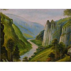 PRYCE, G.W, 'A Peep Through the Rocks, Dovedale', titled verso, oils on board, signed lower left, framed, 24cm x 35cm £30-50