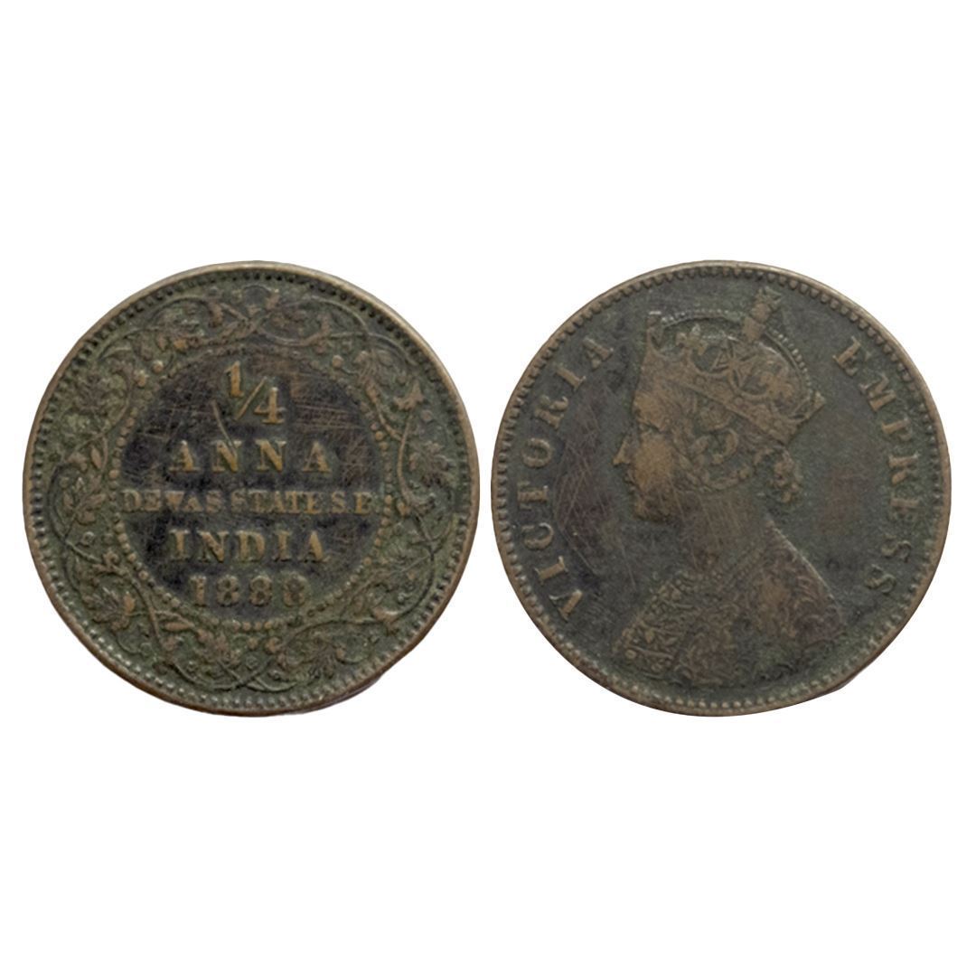 PS, Dewas State, Victoria Empress, Copper, & frac14; Anna, 1888, Senior Branch, Extremely Fine, Very Scrace.