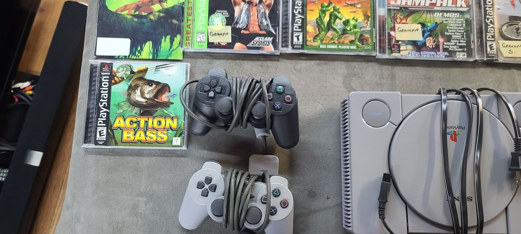 PS WITH GAMES, TWO CONTROLLER, TWO MEMORY CARDS