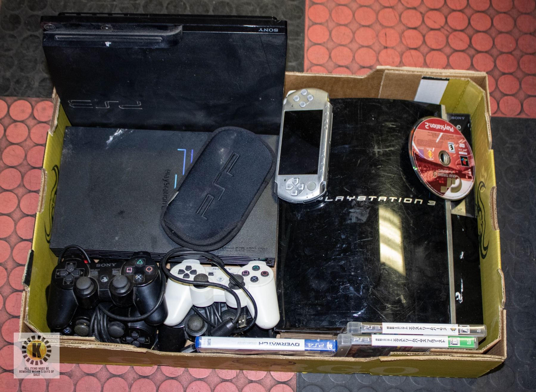 PS2, PS3, PSP CONSOLE, GAME & ACCESSORY LOT AS IS