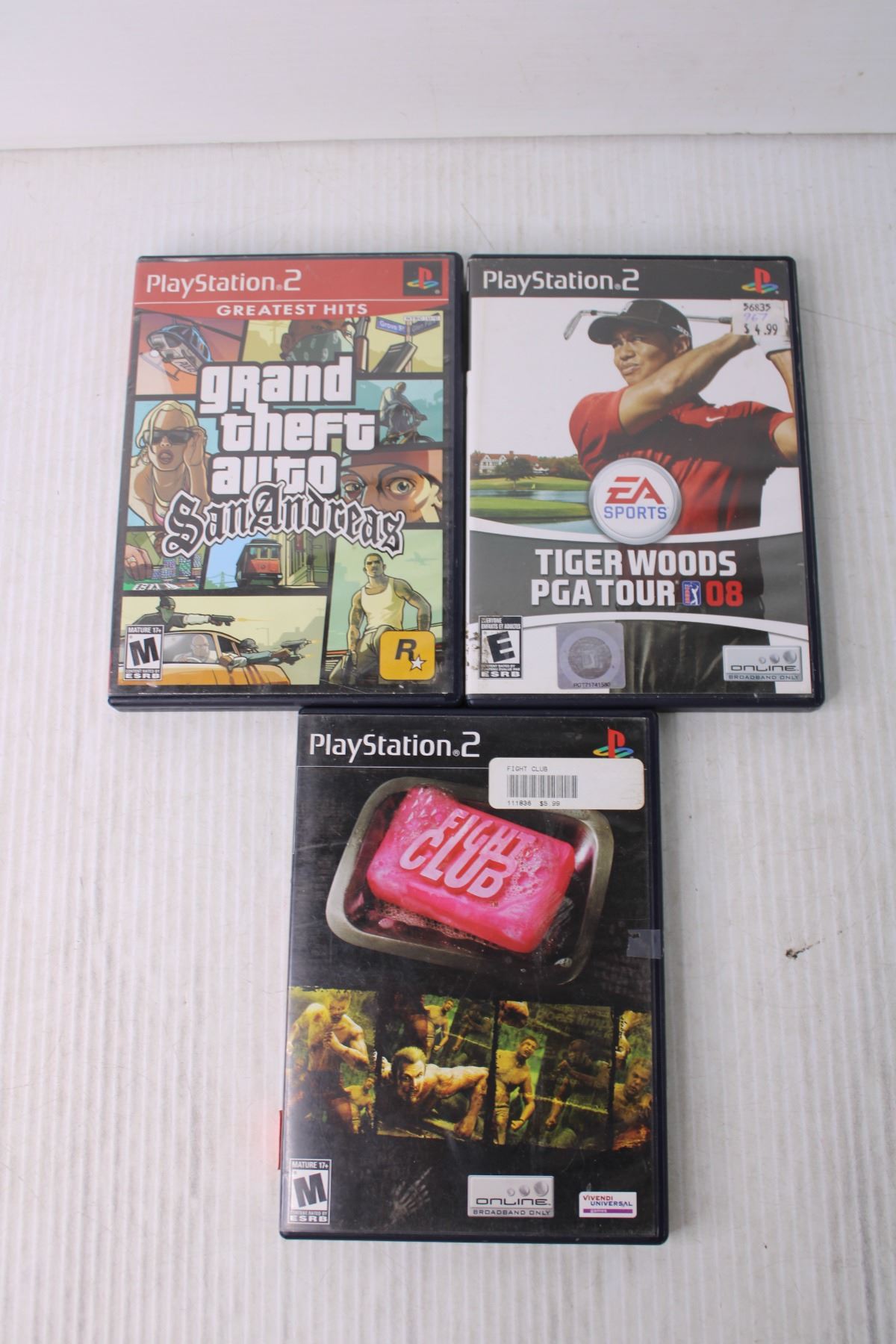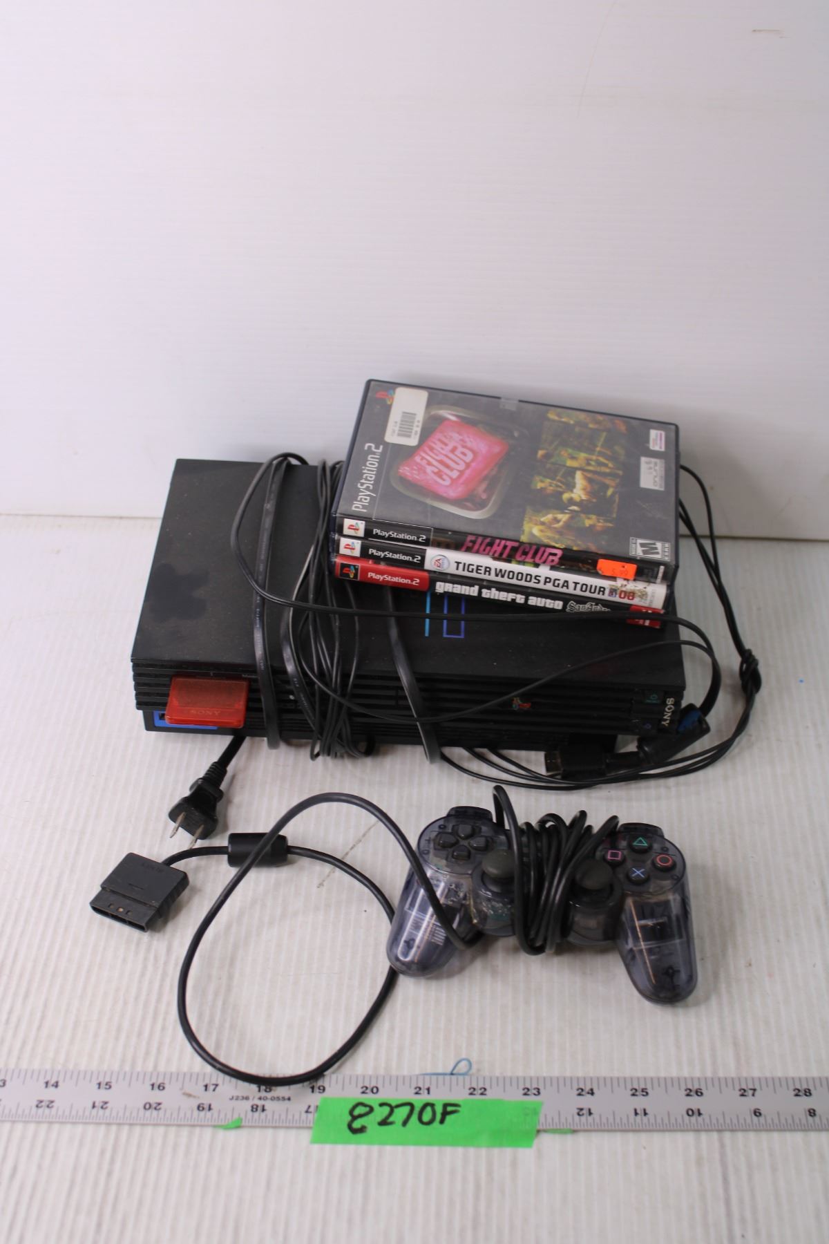 PS2 with Controller, Memory Card and Three Games - PGA, Fight Club,GTA