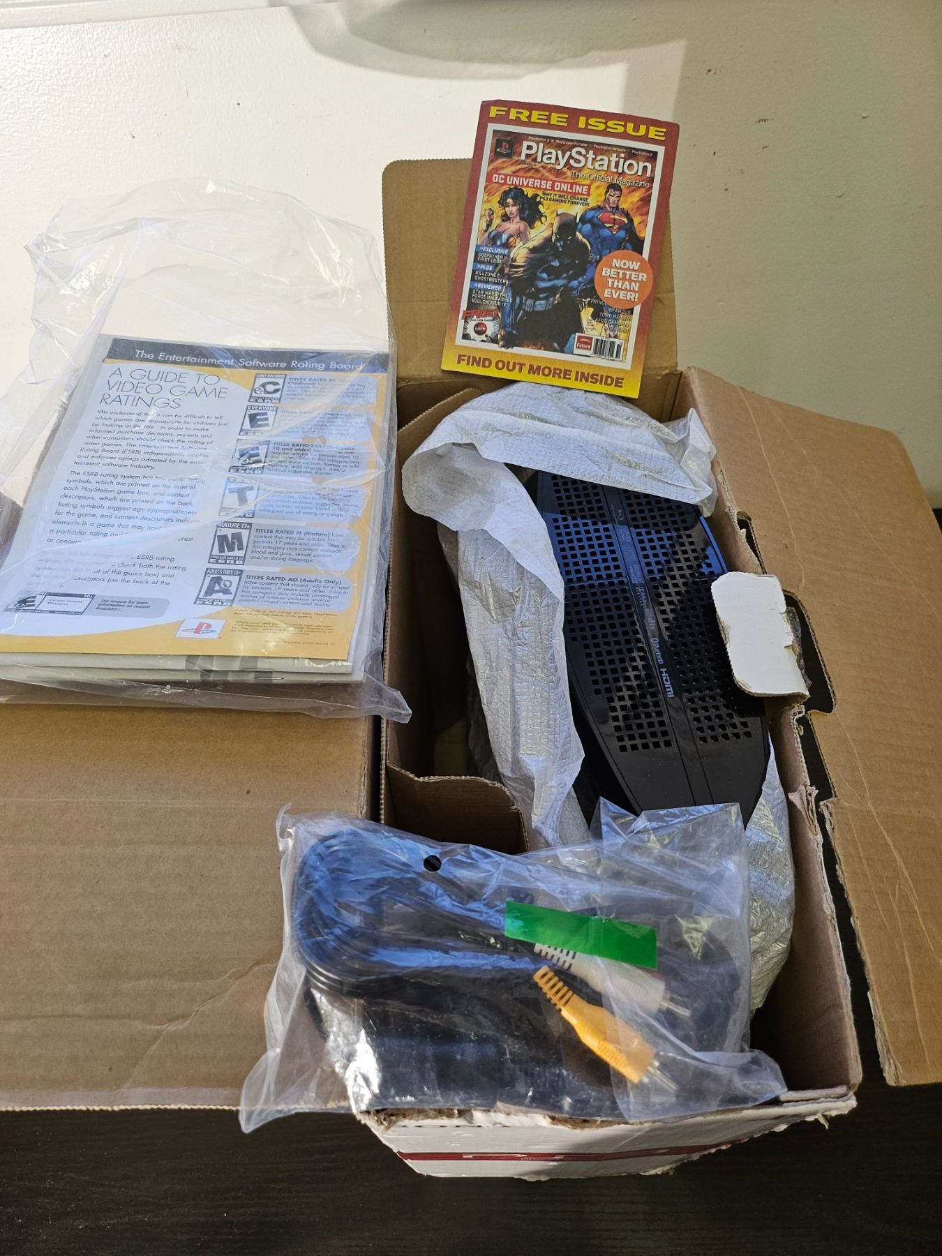PlayStation 320 GB still in box with warranty card all owners manuals and av cord still in bag power cord is not in original bag