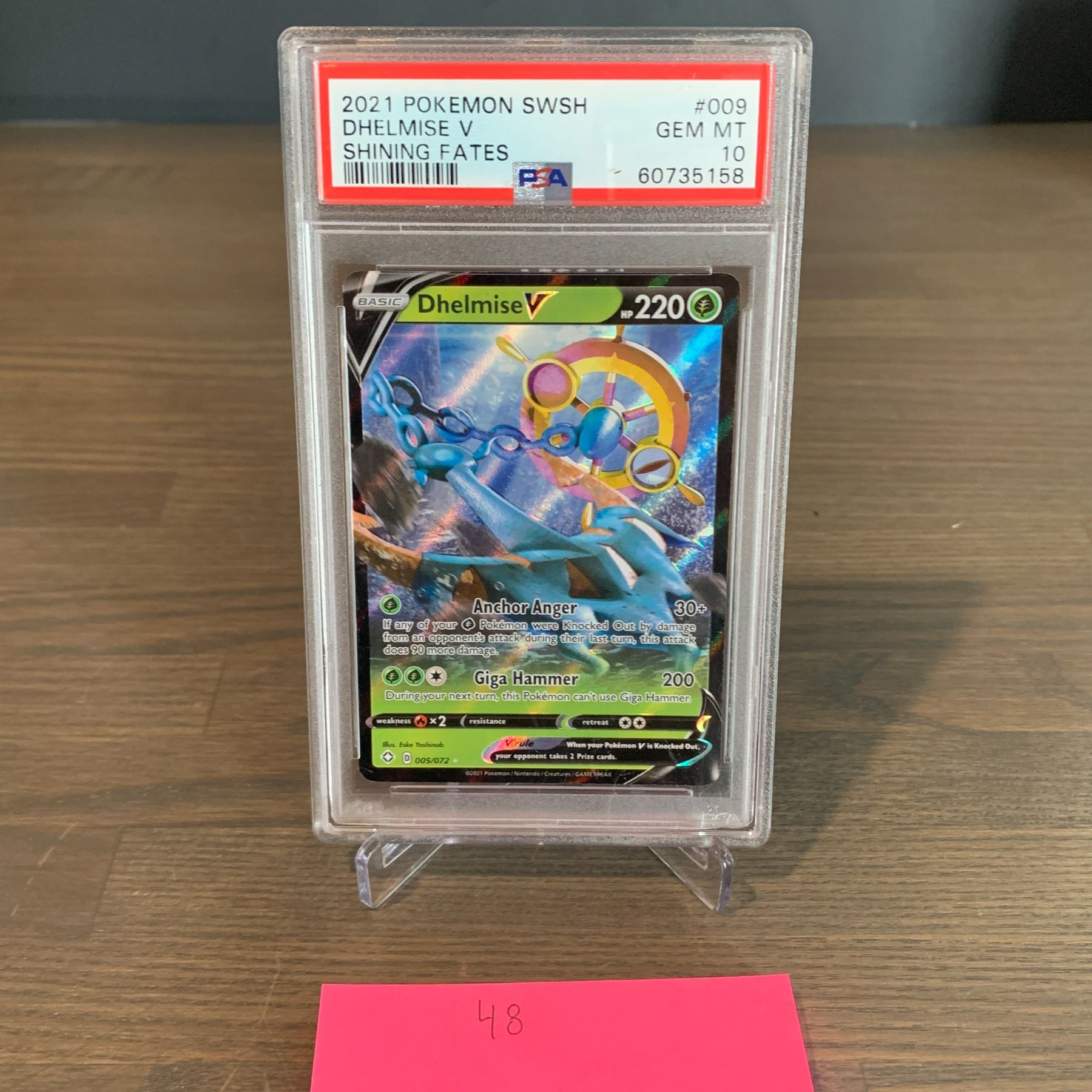 PSA 10 GEM Mint Dhelmise V #9 Pokemon Card. See photos for condition. If you are interested in consigning with us, email aeronhouse1994@gmail.com or fill out the consignment form on ahauctionhouse.com