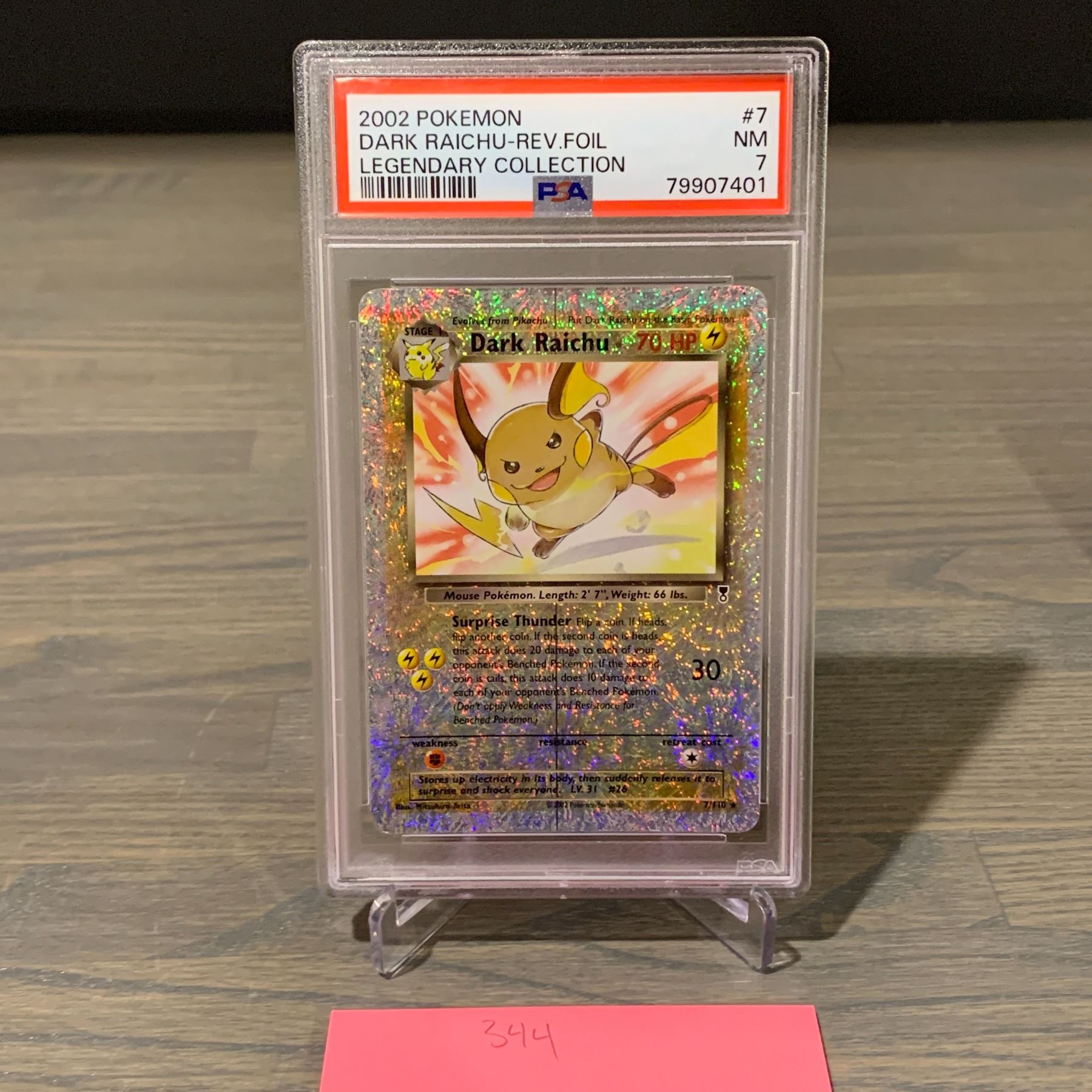 PSA 7 NM Dark Raichu Reverse Holo #7 Legendary Collection Pokemon card. We are a veteran owned company. Please look at the pictures carefully to determine what you believe the condition of collecitible is. We are currently accepting consignments. Email us a aeronhouse1994@gmail.com or visit our website, www.ahauctionhouse.com. We are currently seeking Star Wars related consignments.