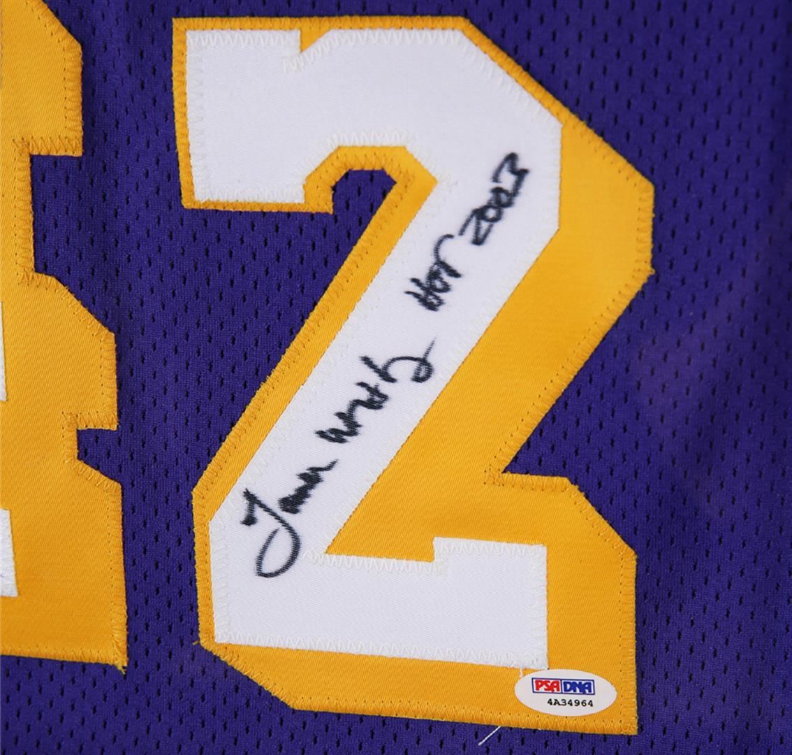 One PSA Certified James Worthy Autographed Basketball Jersey. PSA Certified.