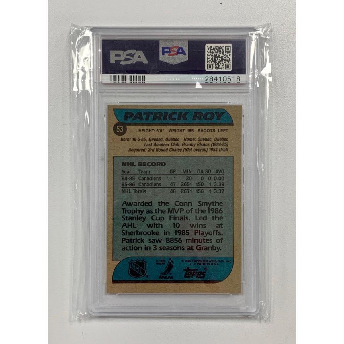 PSA Graded 1986 Patrick Roy 8 - #53 NM-MT. Please view photos for further details.Â