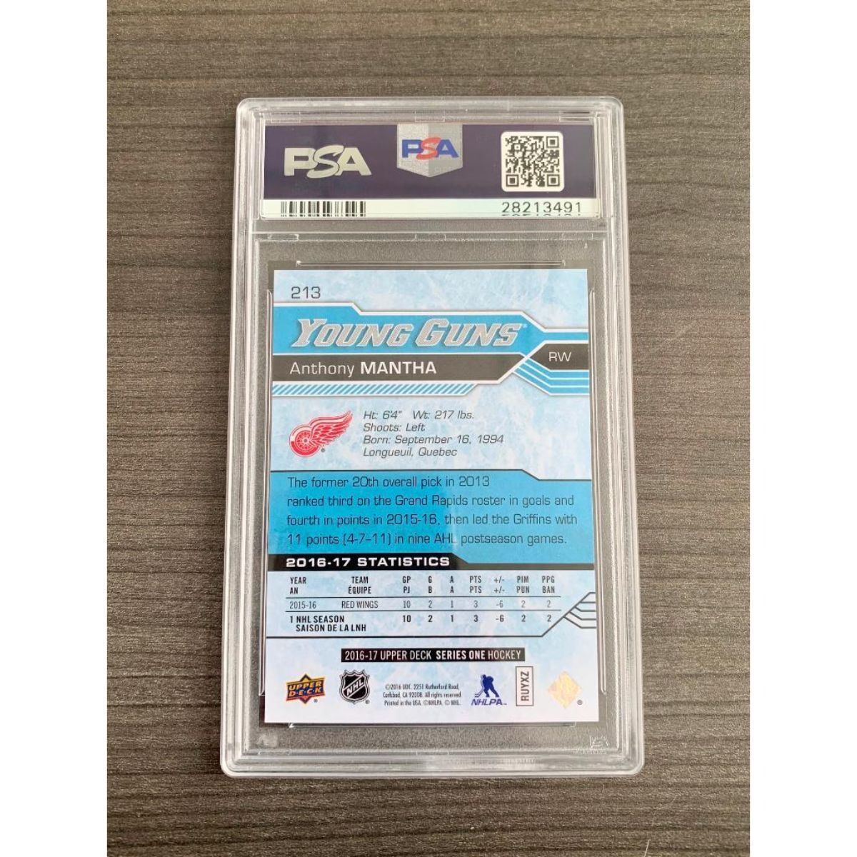 PSA Graded 2016 Upper Deck Anthony Mantha 10 - #213 GEM MT. Please view photos for further details.Â