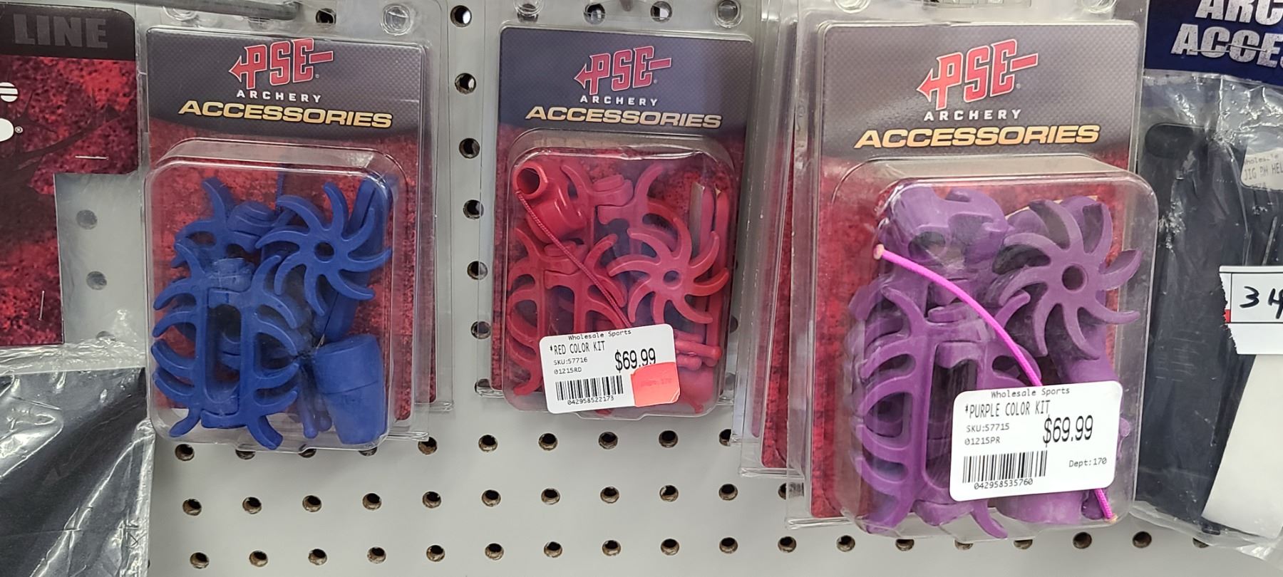 PSE ARCHEY ACCESSORIES VARIETY COLOR KITS (PURPLE, BLUE AND RED) QUANTITY OF 9 RETAIL VAUE $560