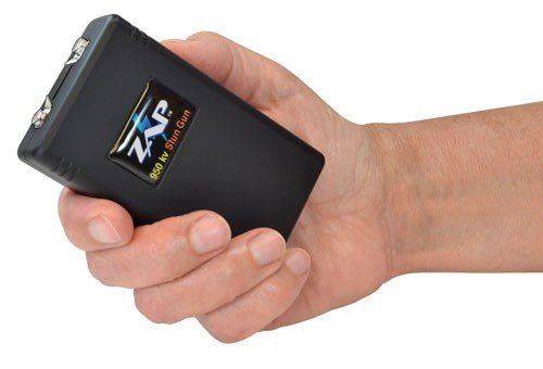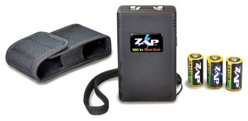 Black -950,000 volts -Conveniently fits into a pocket -Rubber coated with soft contour grip -Red LED on/off indicator -Includes 3 lithium CR123A batteries & heavy nylon case with belt clip