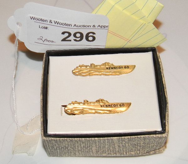 Original set of gold washed tie pins. One of only 50 sets given to congressmen and in this case, a judge for supporting John F. Kennedy's bid in 1960 for the Presidency. Comes with provenance from the judge's family. This item comes with a certificate of authenticity good for the life of the piece.