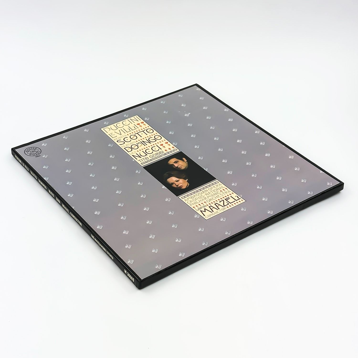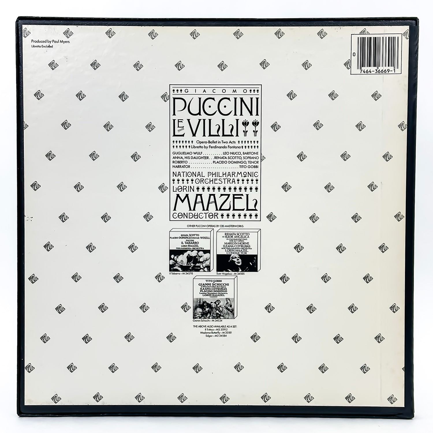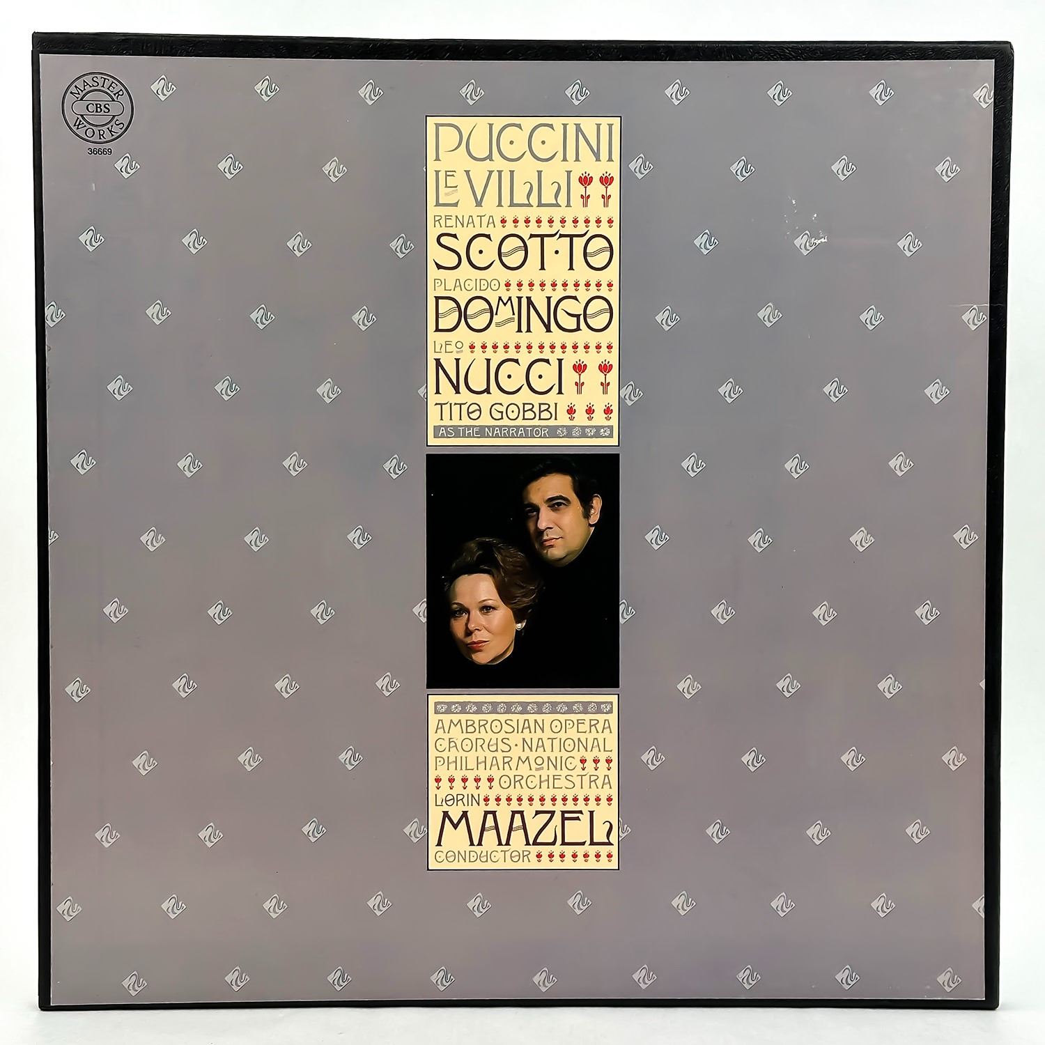#9584 - LP & INFORMATIONAL INSERT. RECORD ALBUM FROM PRIVATE COLLECTION OF CLASSICAL/OPERA RECORDS. CLASSICAL, ROMANTIC, OPERA. PUCCINI - LE VILLI. RENATA SCOTTO, PLACIDO DOMINGO, LEO NUCCI - TITO GOBBI AS THE NARRATOR. AMBROSIAN OPERA CHORUS - NATIONAL PHILHARMONIC ORCHESTRA - LORIN MAAZEL CONDUCTOR. CBS MASTERWORKS 36669