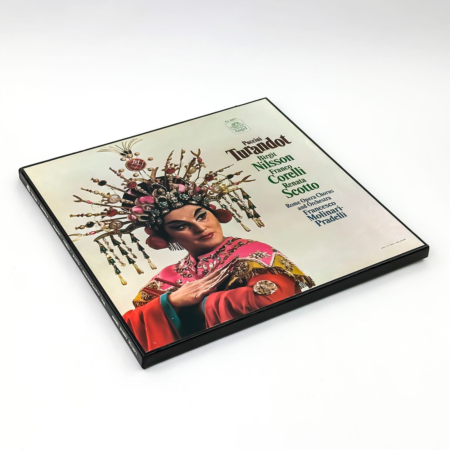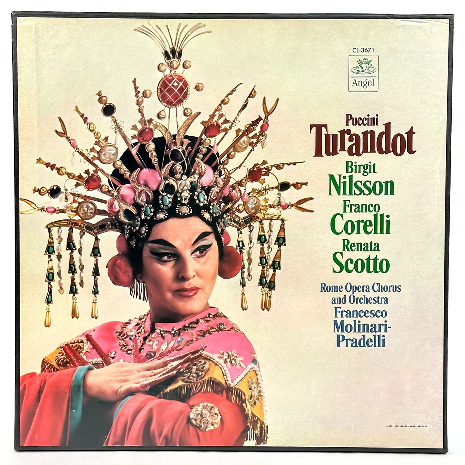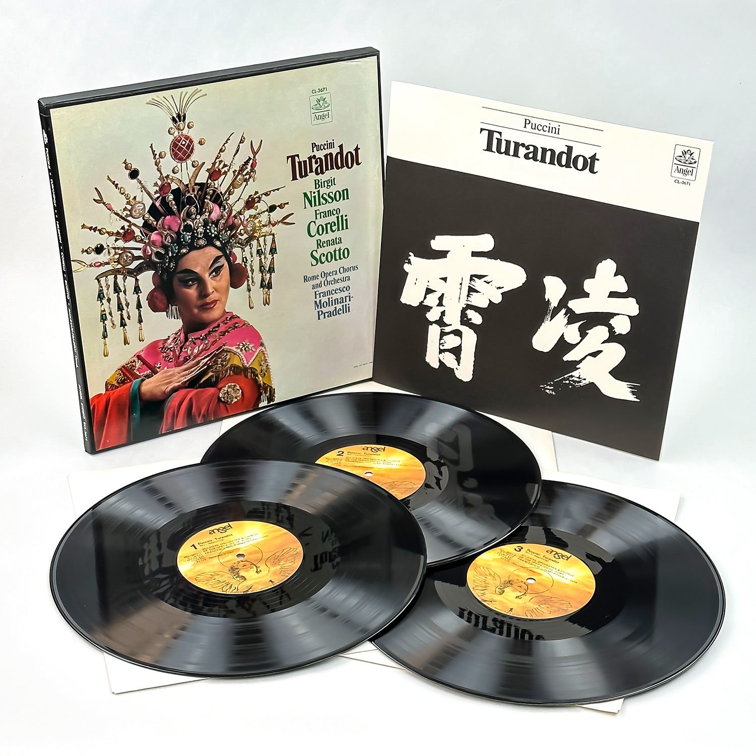 #9593 - 3X VINYL LP BOX SET & INFORMATIONAL INSERT. RECORD ALBUM FROM PRIVATE COLLECTION OF CLASSICAL/OPERA RECORDS. CLASSICAL, OPERA. PUCCINI - TURANDOT - BIRGIT NILSSON, FRANCO, CORELLI, RENATA SCOTTO. ROME OPERA CHORUS AND ORCHESTRA - FRANCESCO MOLINARI-PRADELLI. ANGEL RECORDS CL-3671