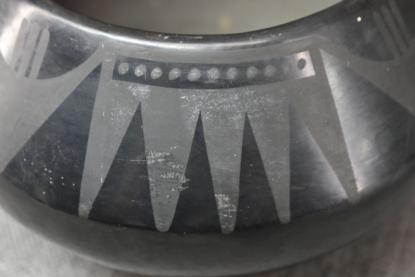 1970's Pueblo Indian, hand coiled with matte on black painted design signed Marie 4.75" x 7"